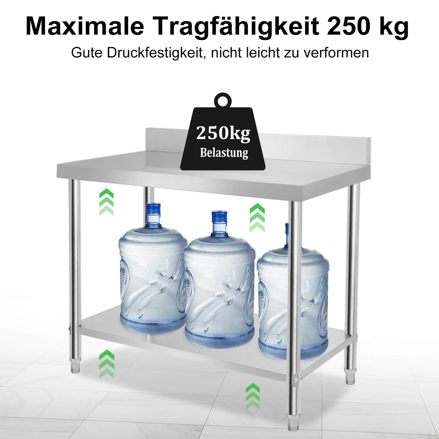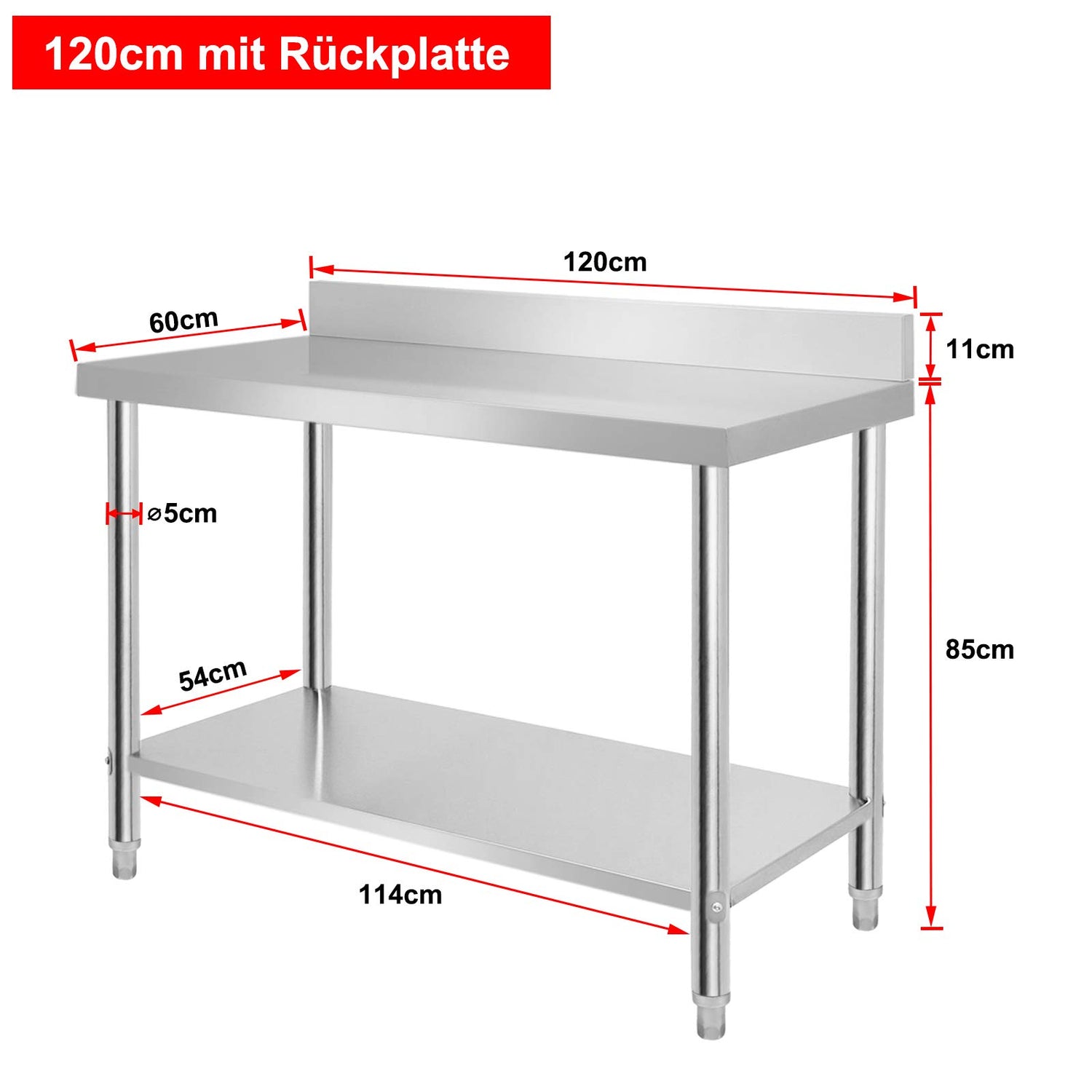 VA-Cerulean Edelstahltisch Edelstahl Arbeitstisch mit Verstellbare Füße Gastro Tisch Zubereitungstisch Zerlegetisch Küchenmöbel für Restaurant Bar, Silber(mit Aufkantung, 120x60x85cm)