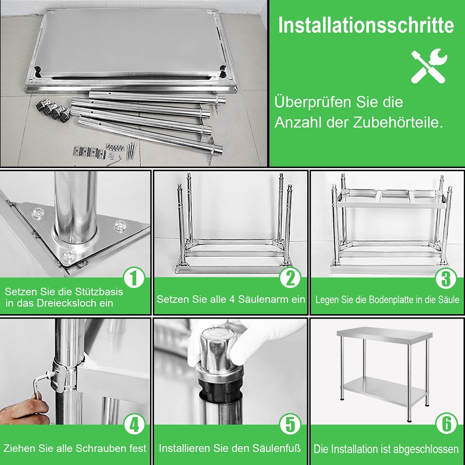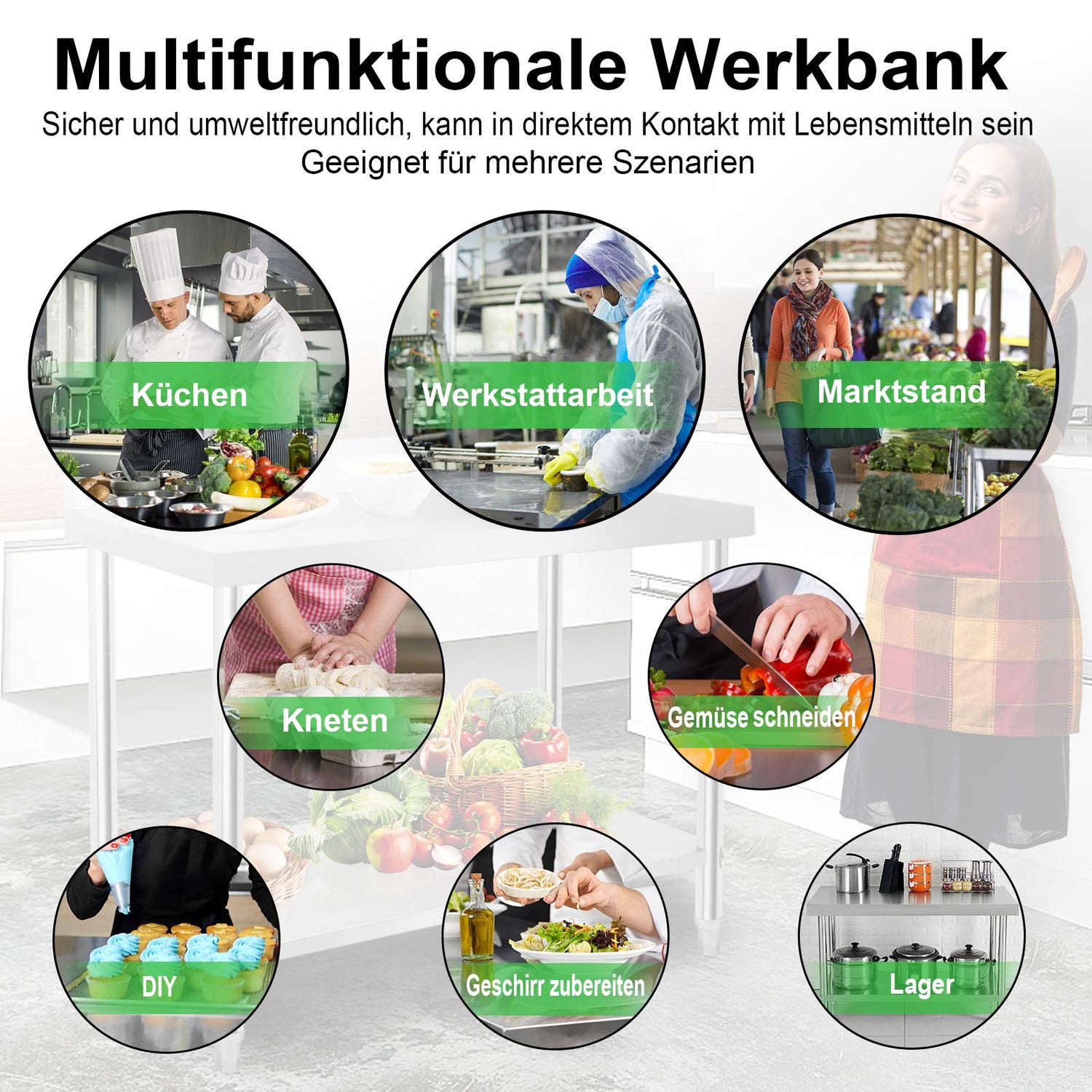 • [Multifunktional] Die Werkbank ist mit einer unteren Ablagefläche ausgestattet und hilft Ihnen, Werkzeuge, Materialien und Geräte ordentlich aufzubewahren, um Platz zu sparen und die Organisation zu verbessern. Sie wird häufig in Küchen, Werkstätten, Verkaufsständen und anderen Bereichen eingesetzt.