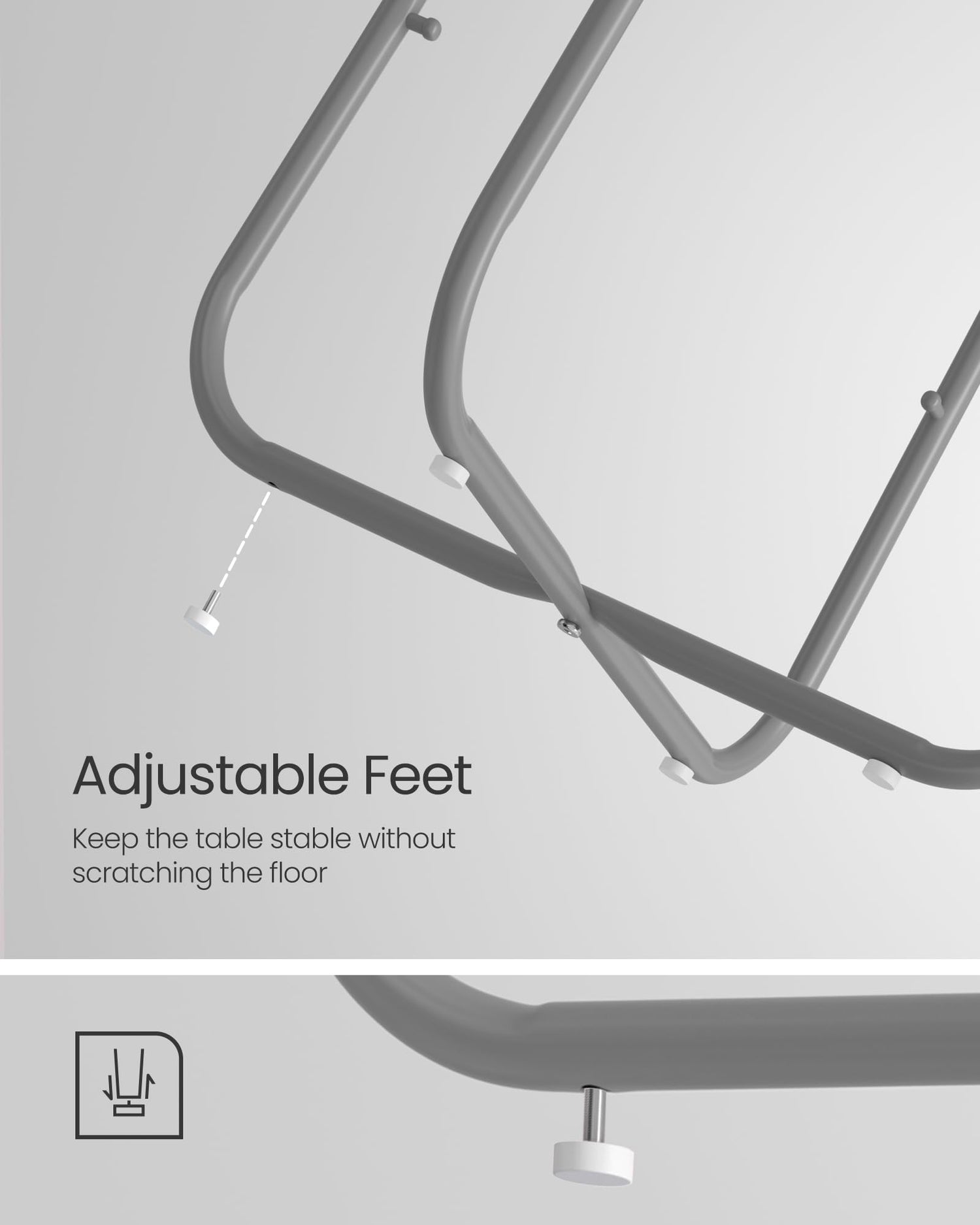 Stabil und zuverlässig Die robuste Spanplattenplatte in Kombination mit einem einteiligen U-förmigen Stahlrahmen sorgt für hohe Stabilität (bis 35 kg Belastbarkeit). Verstellbare Füße garantieren einen sicheren Stand und schützen Ihren Boden vor Kratzern.