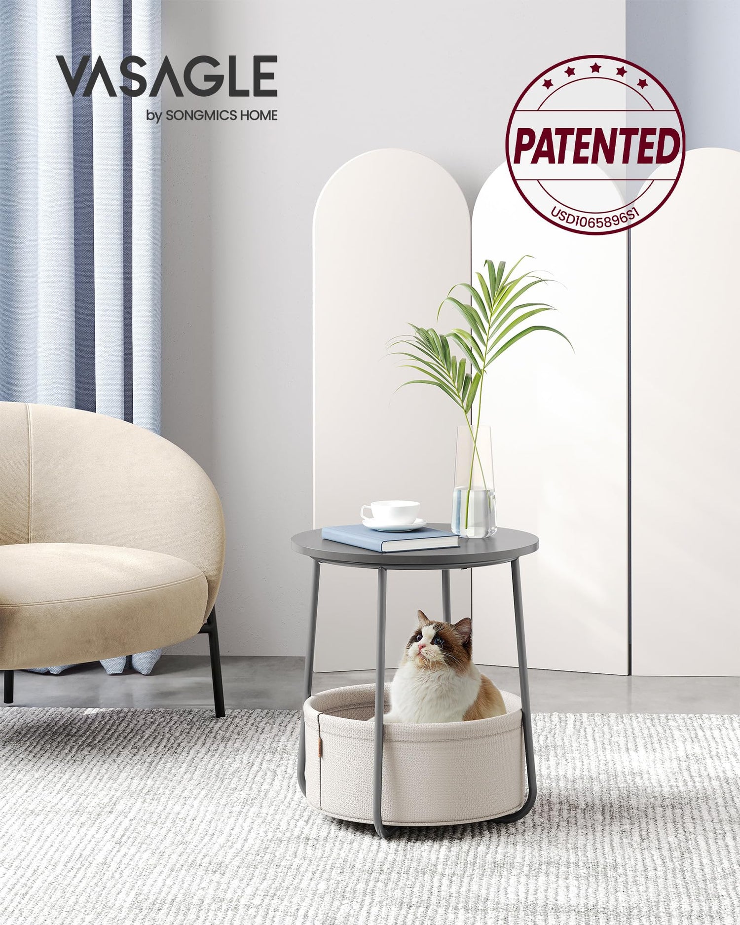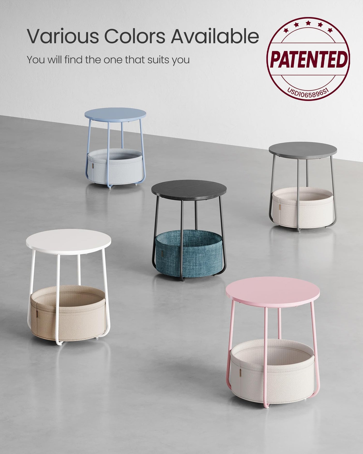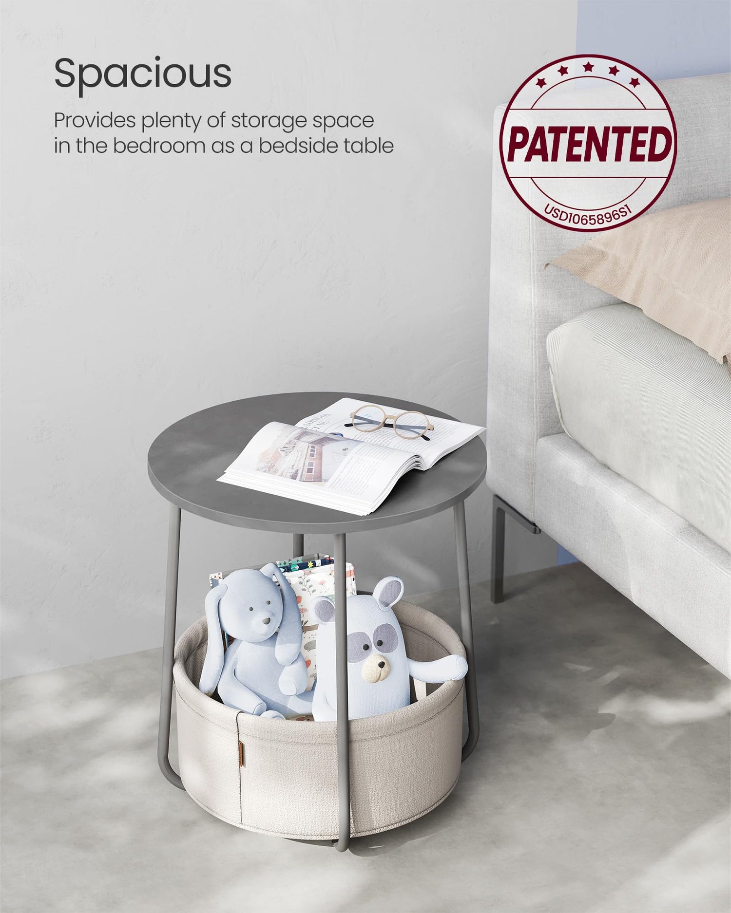 VASAGLE Runder Beistelltisch, Zementgrau/Cremeweiß, Nachttisch mit Stoffkorb, Kompakter Wohnzimmertisch im Modernen Design