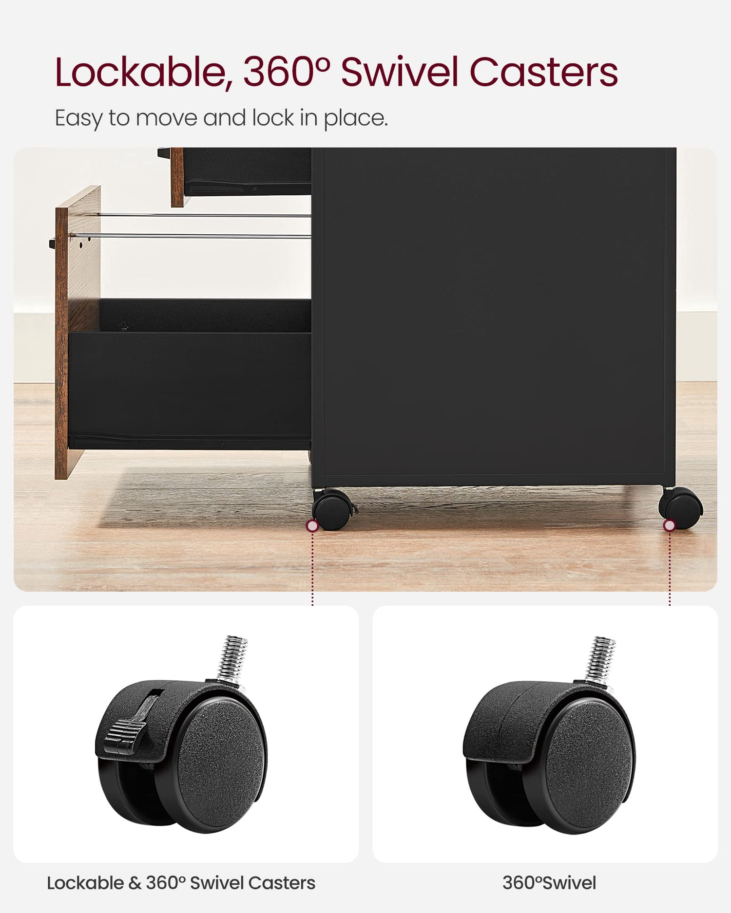 VASAGLE Rollcontainer, Aktenschrank mit 2 Schubladen, mobiler Büroschrank mit Rädern, offenes Fach, Hängeregistratur, Stahlgestell, Industrie-Design, vintagebraun-tintenschwarz OFC71X