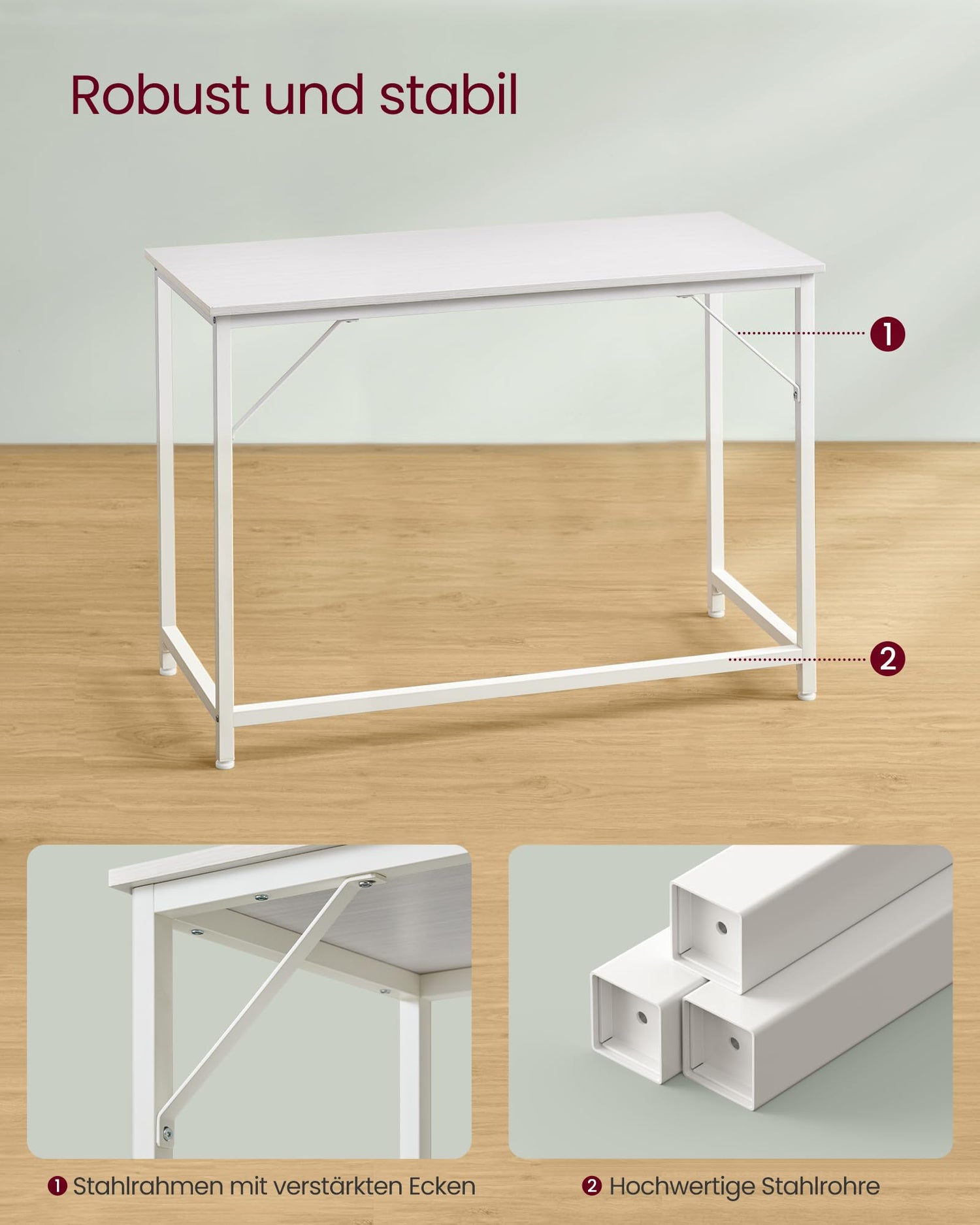 • 【ROBUST UND LANGLEBIG】Hochwertige Holzspanplatte, Stahlrahmen und zusätzliche Stangen an den oberen Ecken verleihen diesem Schreibtisch eine solide Struktur, der bis zu 50 kg tragen kann und Ihnen einen zuverlässigen und langlebigen Arbeitsplatz bietet