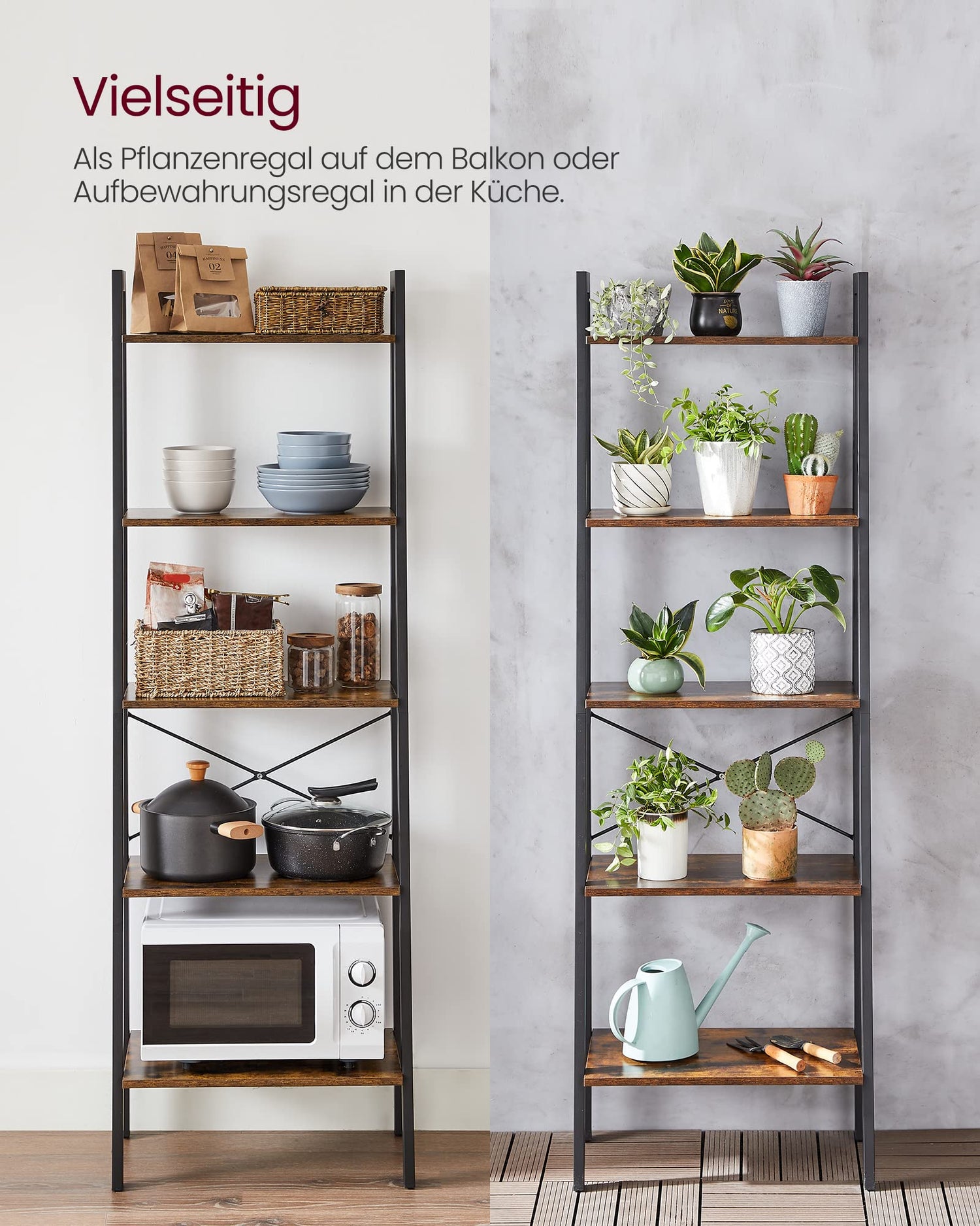 • Vintage Eleganz: Klassische Vintage-Holzmaserungen und Industrie-Design aus robustem Stahl – Dieses Leiterregal vereint beide Stilrichtungen und bringt so einen zarten Touch mit einem Hauch Vergangenheit in Ihre Räumlichkeiten