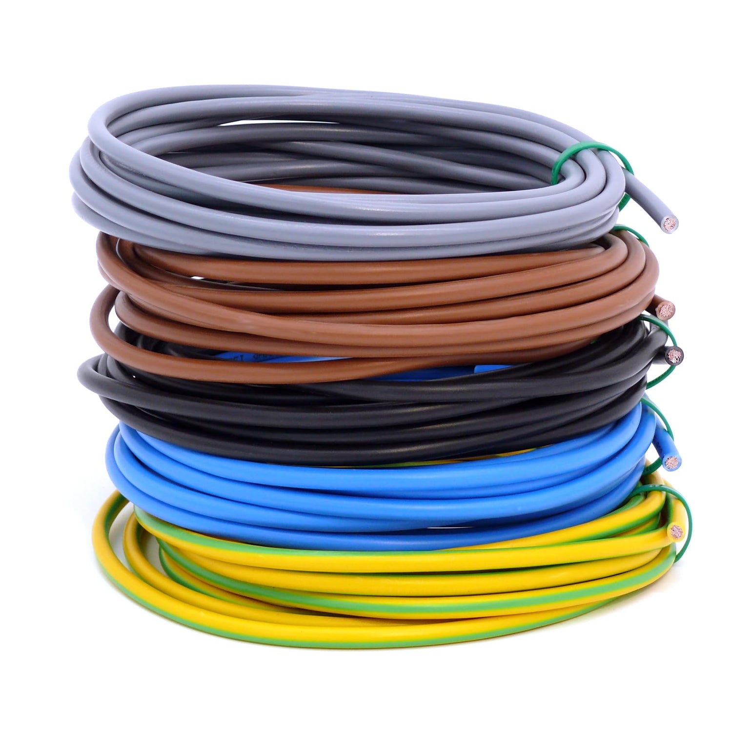 • H07V-K 10mm2 verschiedene Längen (2m, 3m, 5m, 10m, 15m, 20m, 25m, 30m, 35m, 40m, 45m, 50m, 100m) und verschiedenen Farben (schwarz, grau, braun, blau, gelb/grün) inkl. 5 Aderendhülsen 10mm2