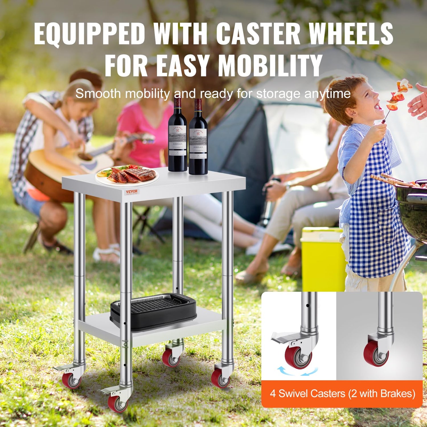 VEVOR Arbeitstisch 61 x 46 x 86 cm Edelstahl Catering Arbeitstisch 100 kg für Belastbarkeit Lebensmittel Zubereitungstisch Gewerbliche Arbeitstisch für Küche Bar Restaurantar 4 verstellbare Füße