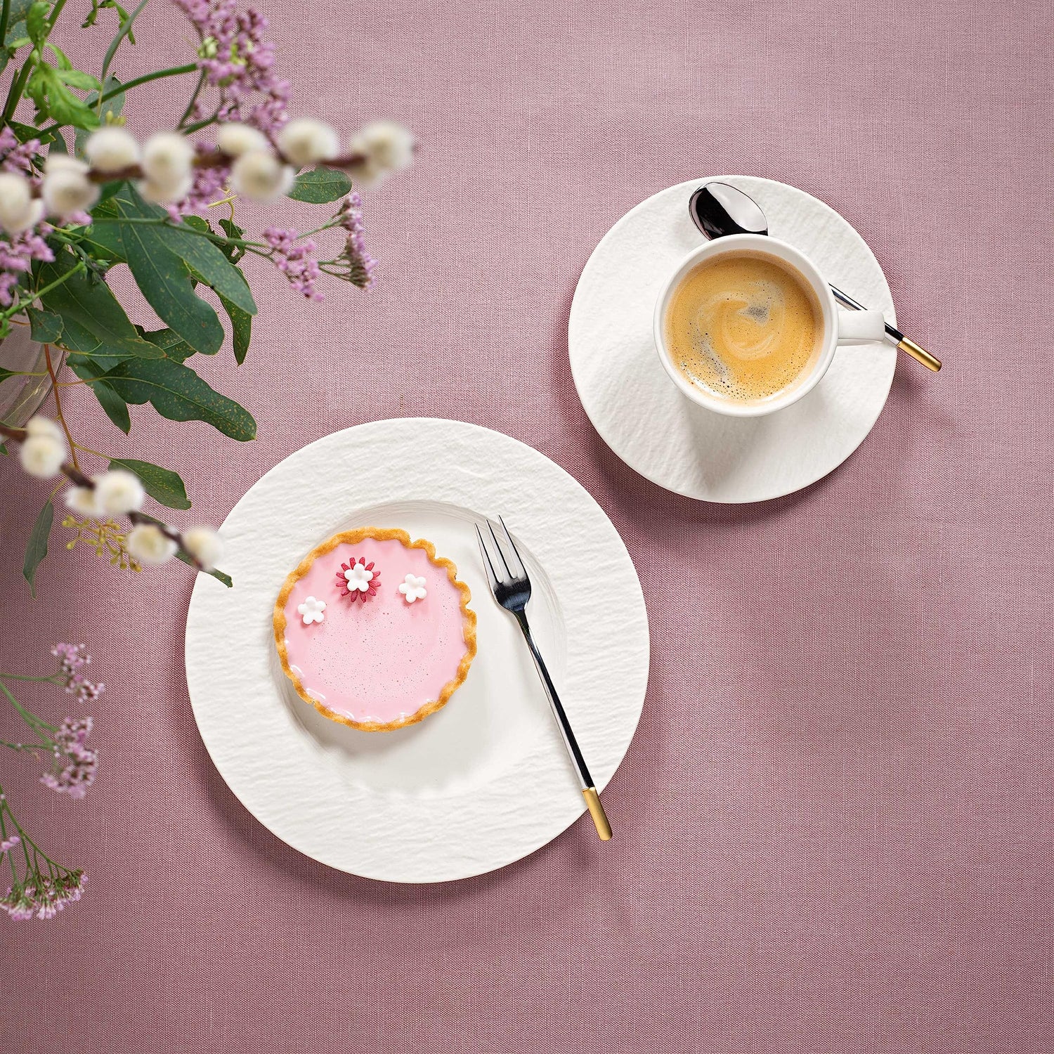 Villeroy & Boch – Manufacture Rock blanc Frühstücks-Set 6 teilig für 2 Personen Weiß, Spülmaschinenfest, Mikrowellensicher, Geschirrset mit Frühstückstellern, Tassen und Schüsseln, Premium Porzellan