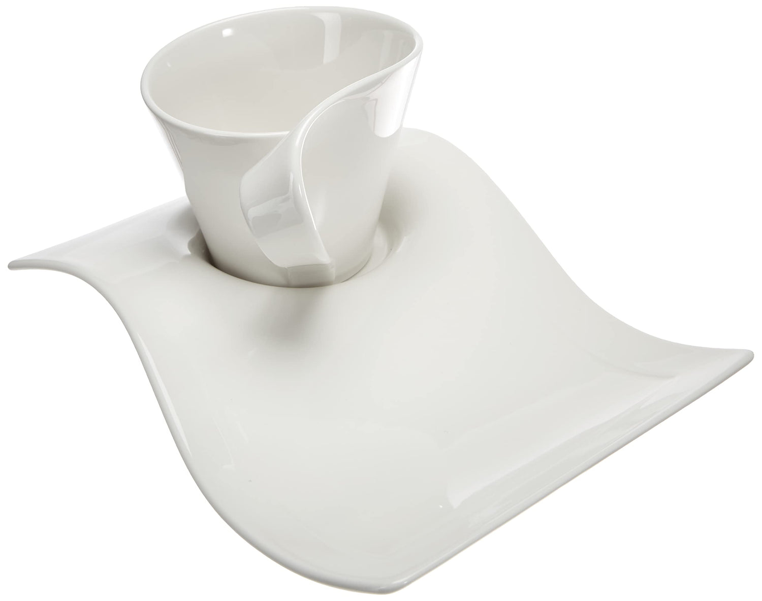 Villeroy & Boch NewWave Cappuccino-Set – Für den besonderen Kaffeemoment Das NewWave Cappuccino-Set ist ein echter Hingucker und ein Must-Have für Kaffeegenießer. Gönnen Sie sich eine kleine Auszeit und genießen Sie Ihren Kaffee oder Cappuccino aus dem formschönen Porzellanbecher. Sein geschwungener Henkel liegt perfekt in der Hand und setzt schöne Akzente. Durchdachtes Set von Villeroy & Boch| Die Kaffeetasse kommt mit einer schwungvollen Untertasse und einem Edelstahllöffel. Auf der Einbuchtung der Untertasse können Kekse und andere Köstlichkeiten abgelegt werden. Die Biegung in der Stielmitte lässt den Kaffeelöffel elegant auf dem Tassenrand schweben. Details, die genussvolle Momente perfektionieren.