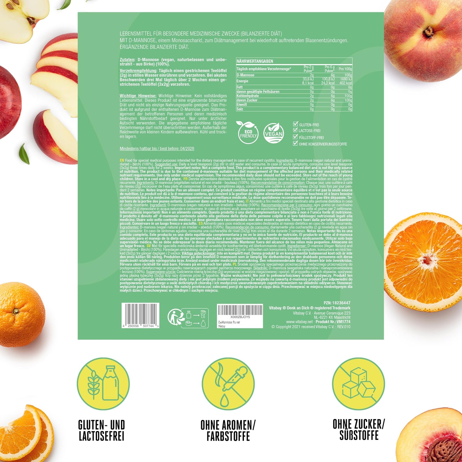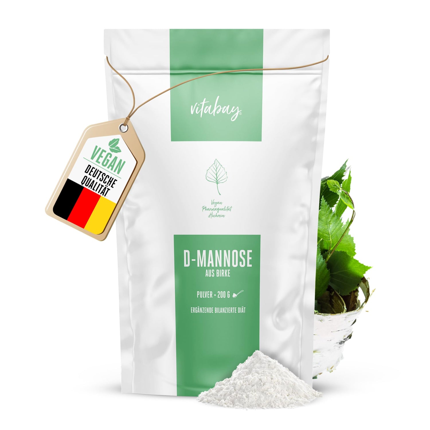 Vitabay D-Mannose Pulver aus Birke 200g - D Mannose Pulver Birke - Vegan, Naturbelassen & Laborgeprüft - 2g D Manose pro Tagesdosis - D Mannose Pulver aus Birke D- Mannose Dmannosse Pulver Mannose D
