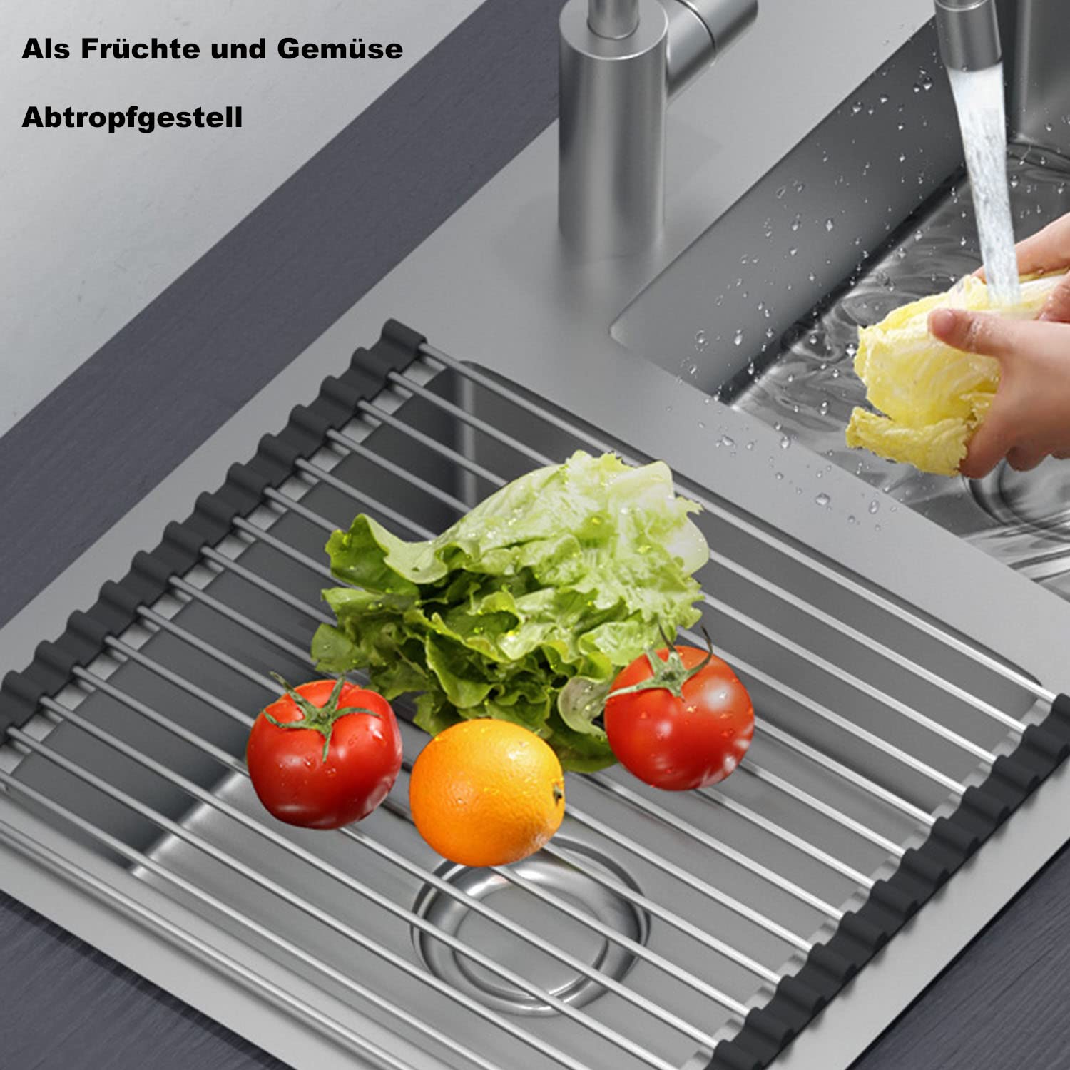 • 【Überwaschungstrocknen】Geschirr abtropfständer kann verwendet werden, um gewaschene Gerichte, Obst und Gemüse zu trocknen, die am Waschbecken geöffnet sind, das Wasser auf den frisch gewaschenen Gerichten direkt in die Spüle tropft, halten Sie die Arbeitstop trocken und von Bakterien fern. Dies ist ein guter Helfer in unserer Küche.