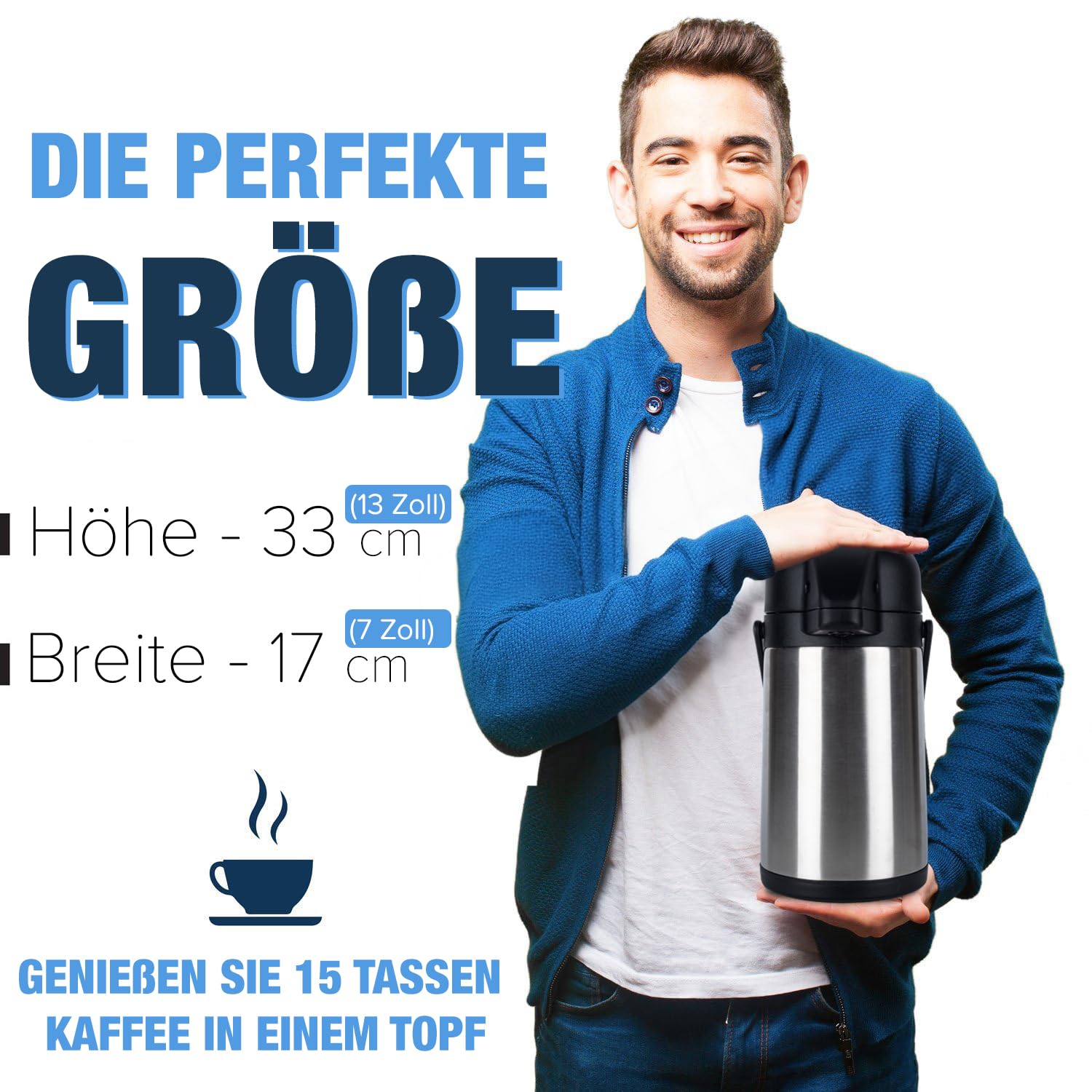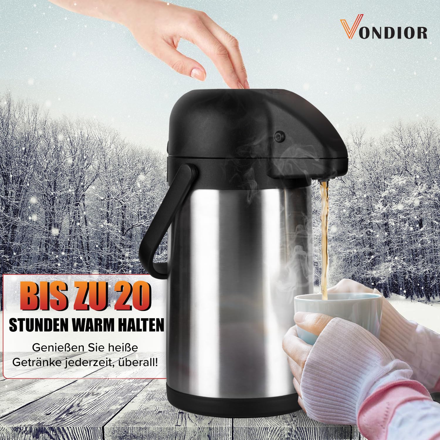 Vondior Airpot Pumpkanne 1,9 liters - Professionelle isolierte Kaffeekaraffe aus Edelstahl, Thermoskanne, Thermos-Getränkespender, Geeignet Für Partygetränke