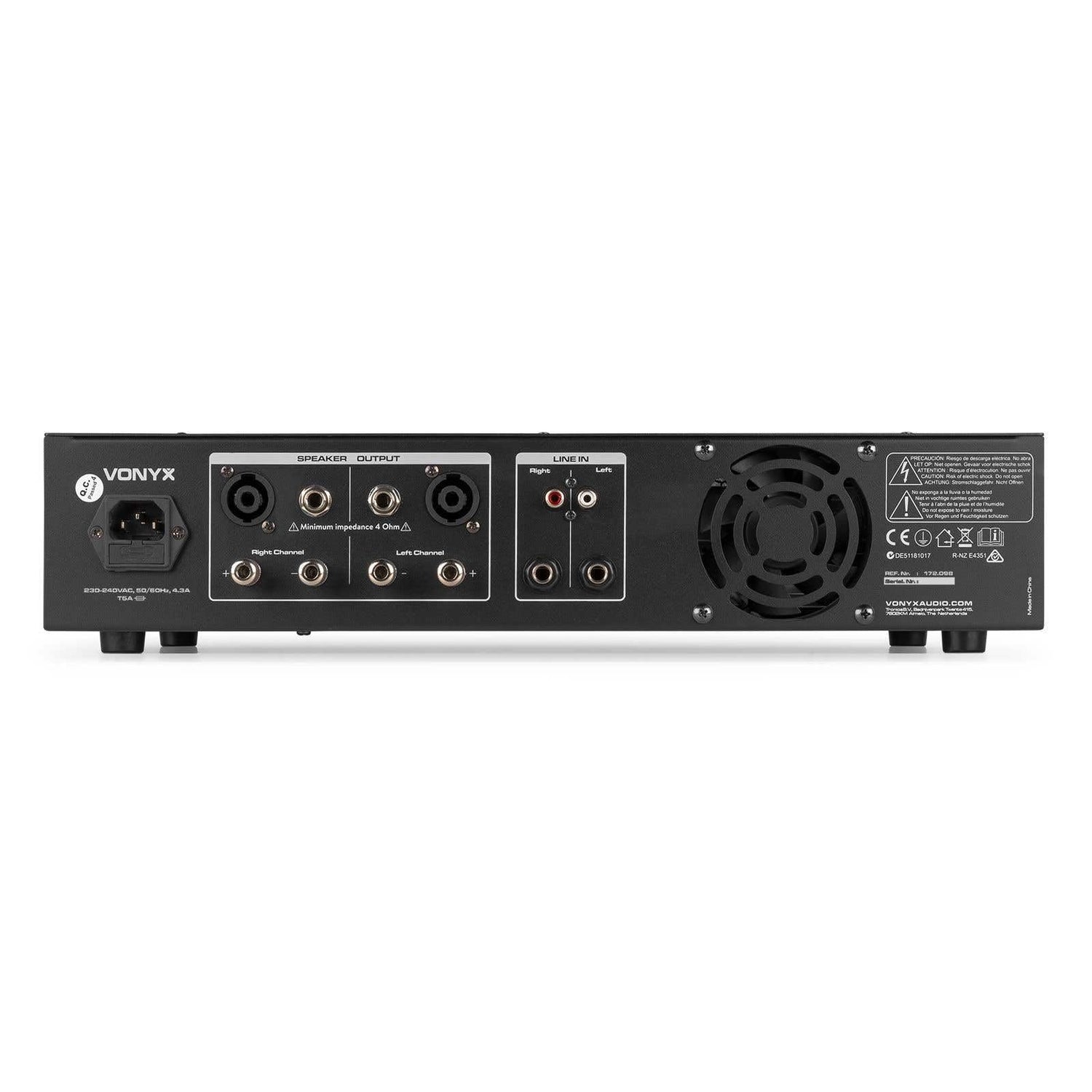 Einzelheiten: Vonyx VPA1000, leistungsstarker 2x 500 W Stereoverstärker mit Bluetooth und MP3-Player