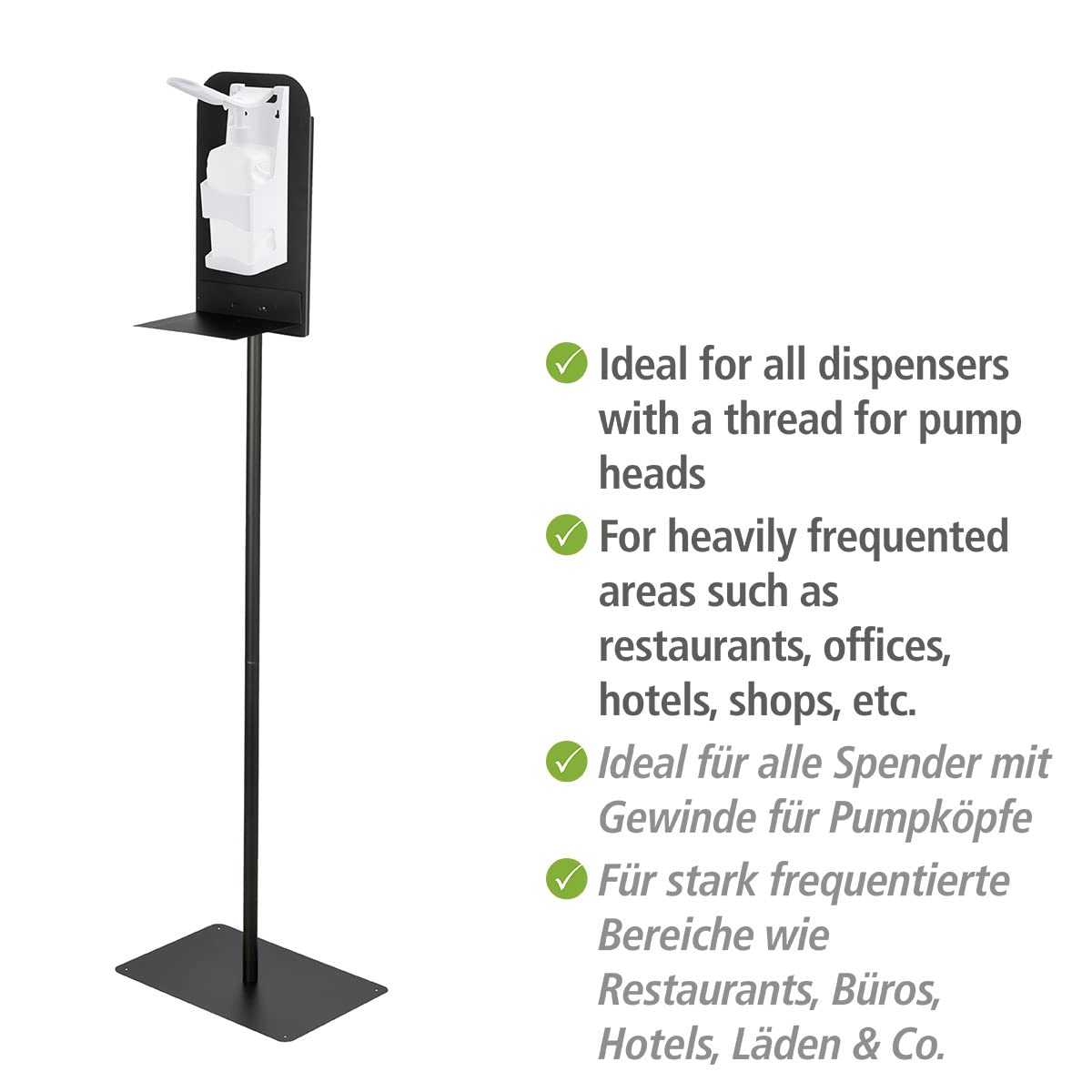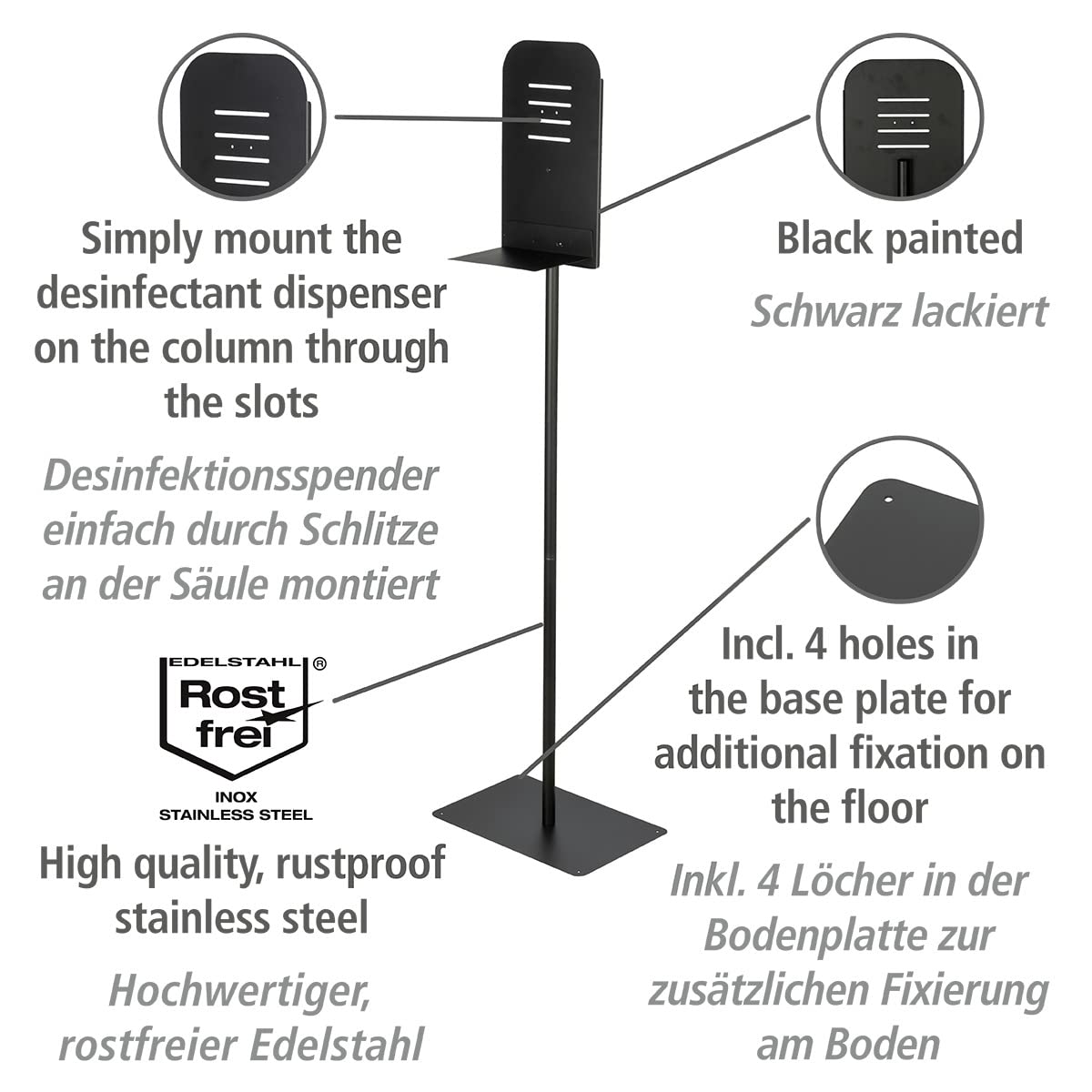 WENKO Desinfektions-Ständer, universelle Halterung mit Standfuß für Desinfektionsmittel-Spender zur Wandmontage, Desinfektionssäule aus rostfreiem Edelstahl schwarz lackiert, 40 x 150 x 27 cm