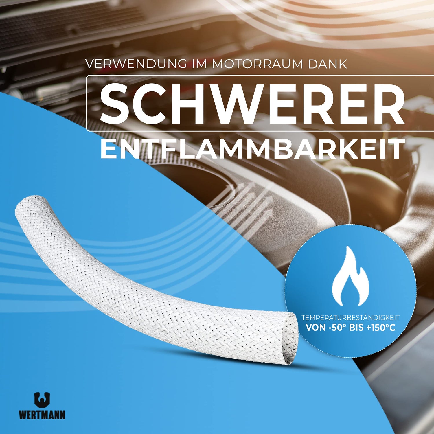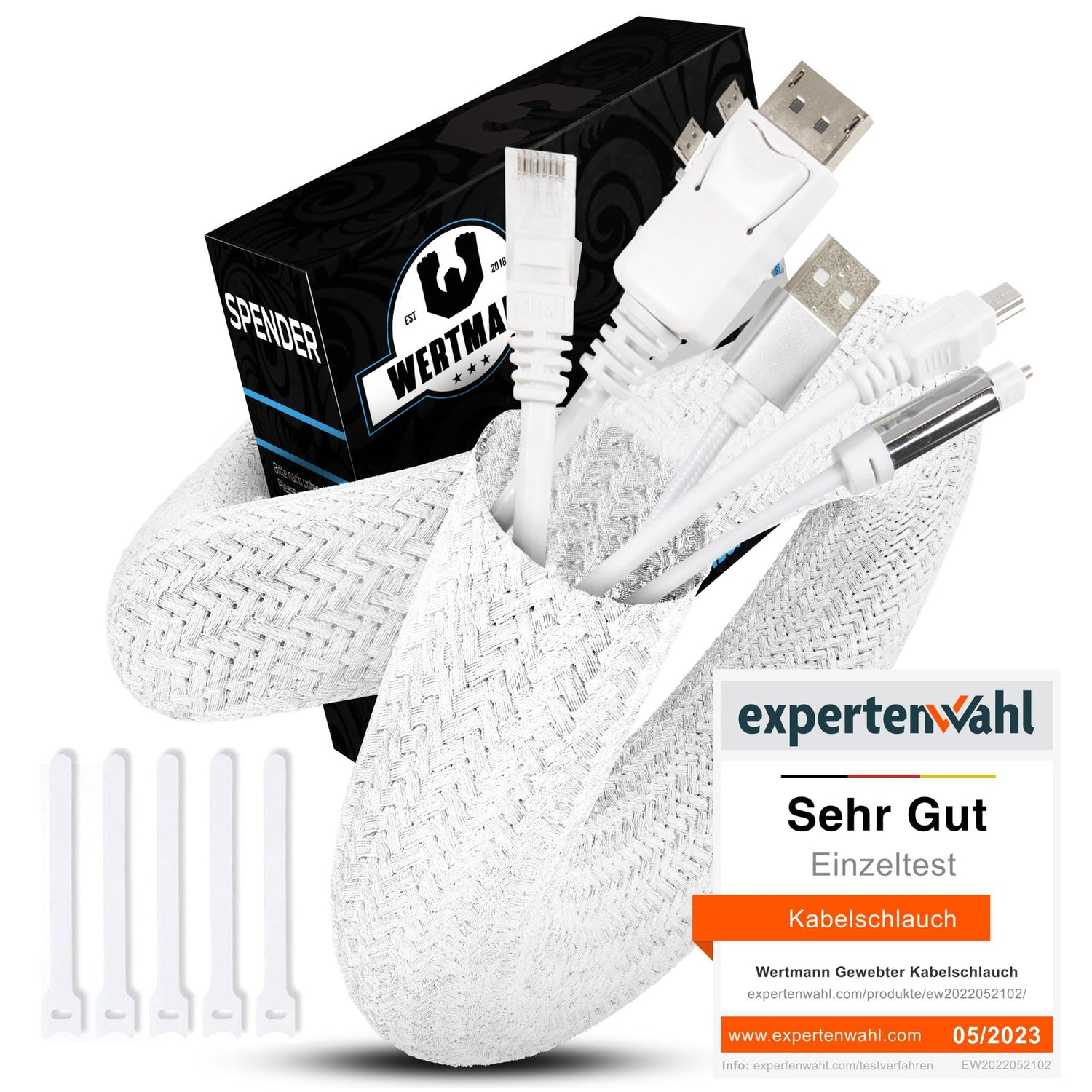 Wertmann gewebter Kabelschlauch weiß [3m] inkl Klettkabelbinder - Durchmesser [12-20mm] passt Sich an - als TV Kabelkanal weiß oder für den PC als Kabelmanagement Schreibtisch