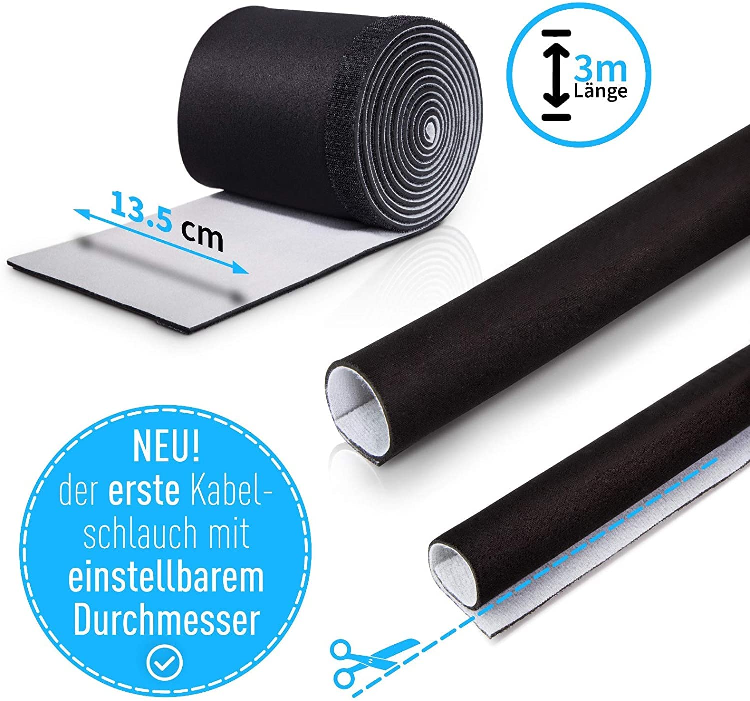 Wertmann Neopren Kabelschlauch [3m] für TV oder PC Kabelmanagement Schreibtisch - Einstellbarer Durchmesser - als Flexibler Kabelkanal Schreibtisch oder als Kabelschutz Katze in schwarz oder weiß