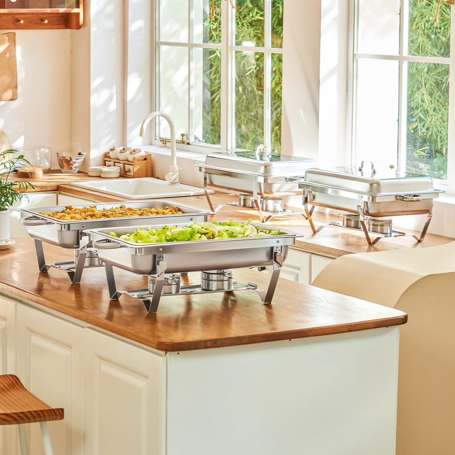 Wilprep Chafing Dish Edelstahl Buffet-Set Warmhaltebehälter Speisenwärmer Wärmebehälter Rechaud für Catering, Buffet und Party (4 Set x 9L)