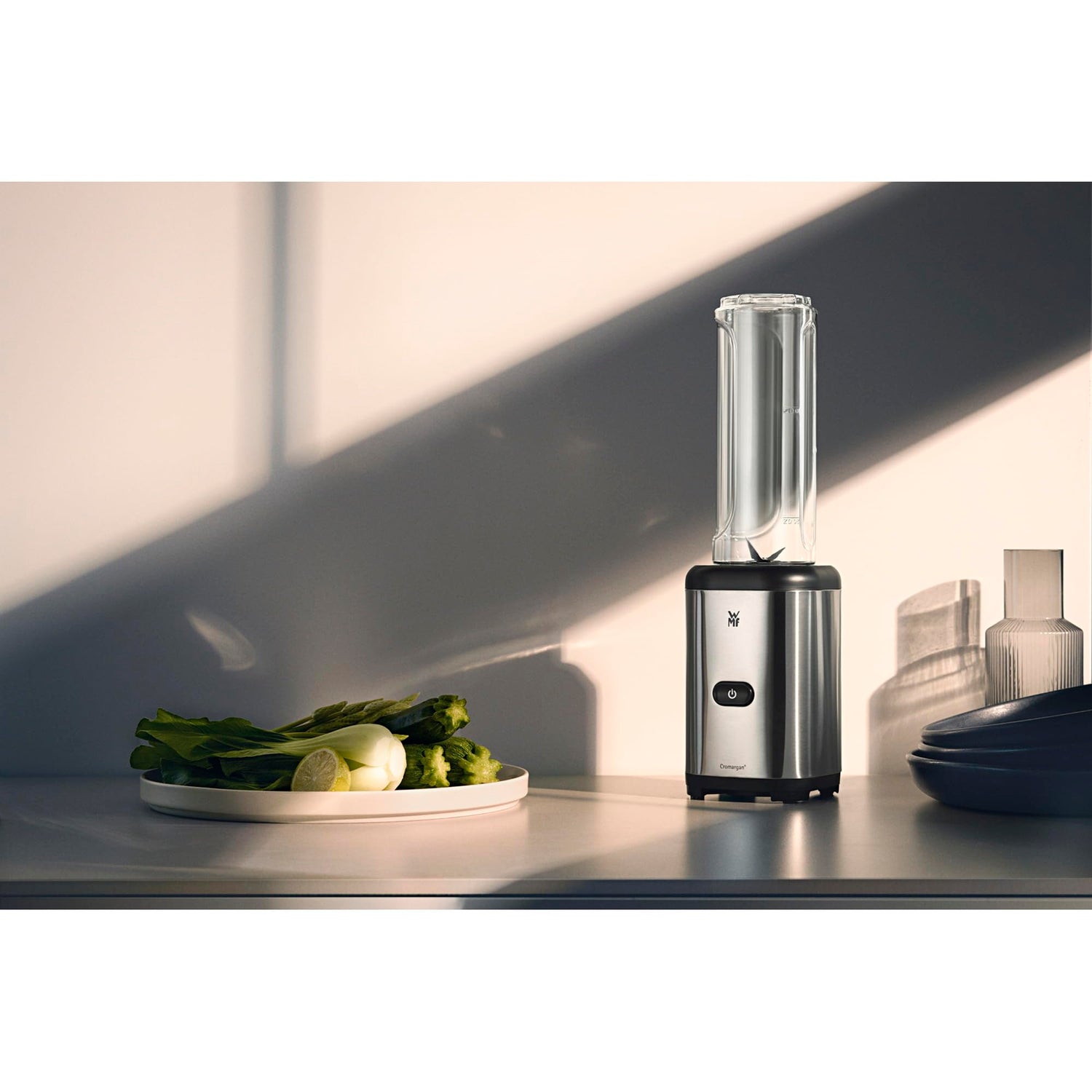 Produkthighlights: Cromargan® matt 300 Watt Leistung Fassungsvermögen: 0,6 Liter Hochwertiges 4-flügliges Edelstahlmesser Mixbehälter mit Skala und praktischem Trinkdeckel, spülmaschinen geeignet Sicherheitsabschaltung: Mixfunktion nur bei aufgesetztem Mixbehälter Hohe Standfestigkeit durch rutschsichere Aufstellung