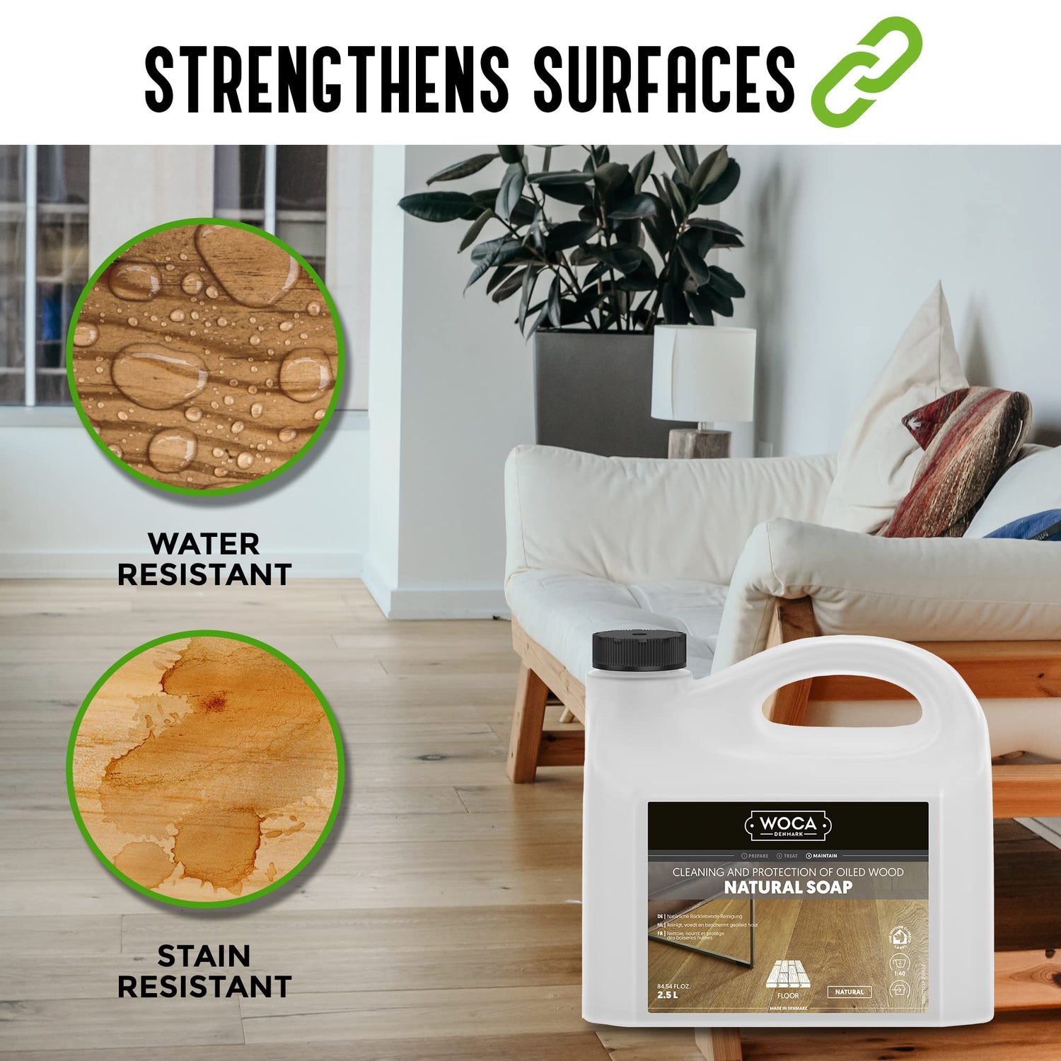 • Ideale Reinigung und Pflege für alle geölten, gewachsten und geseiften Holzoberflächen