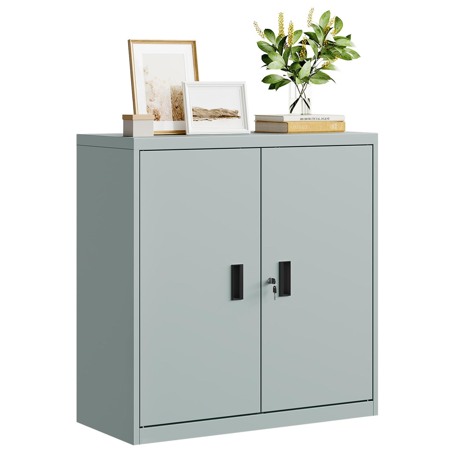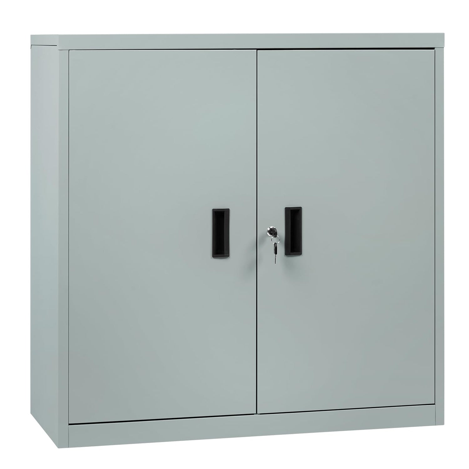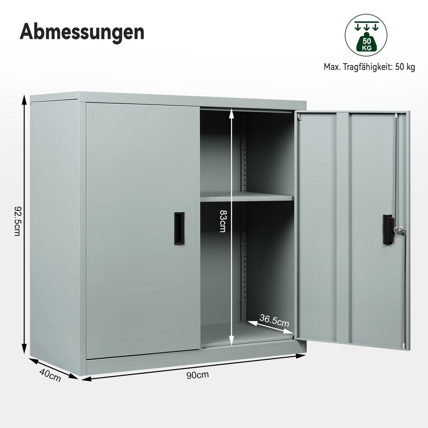 WOLTU Aktenschrank abschließbar, Ordnerschrank mit höhenverstellbarem Einlegboden, Metallschrank mit Schloss, Büroschrank Lagerschrank Mehrzweckschrank, Grau, B90xH92xT40 cm, ASK12gr