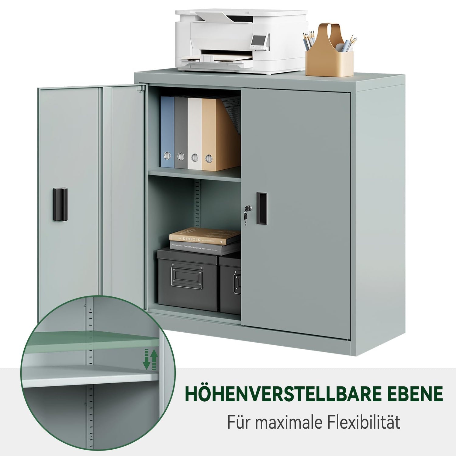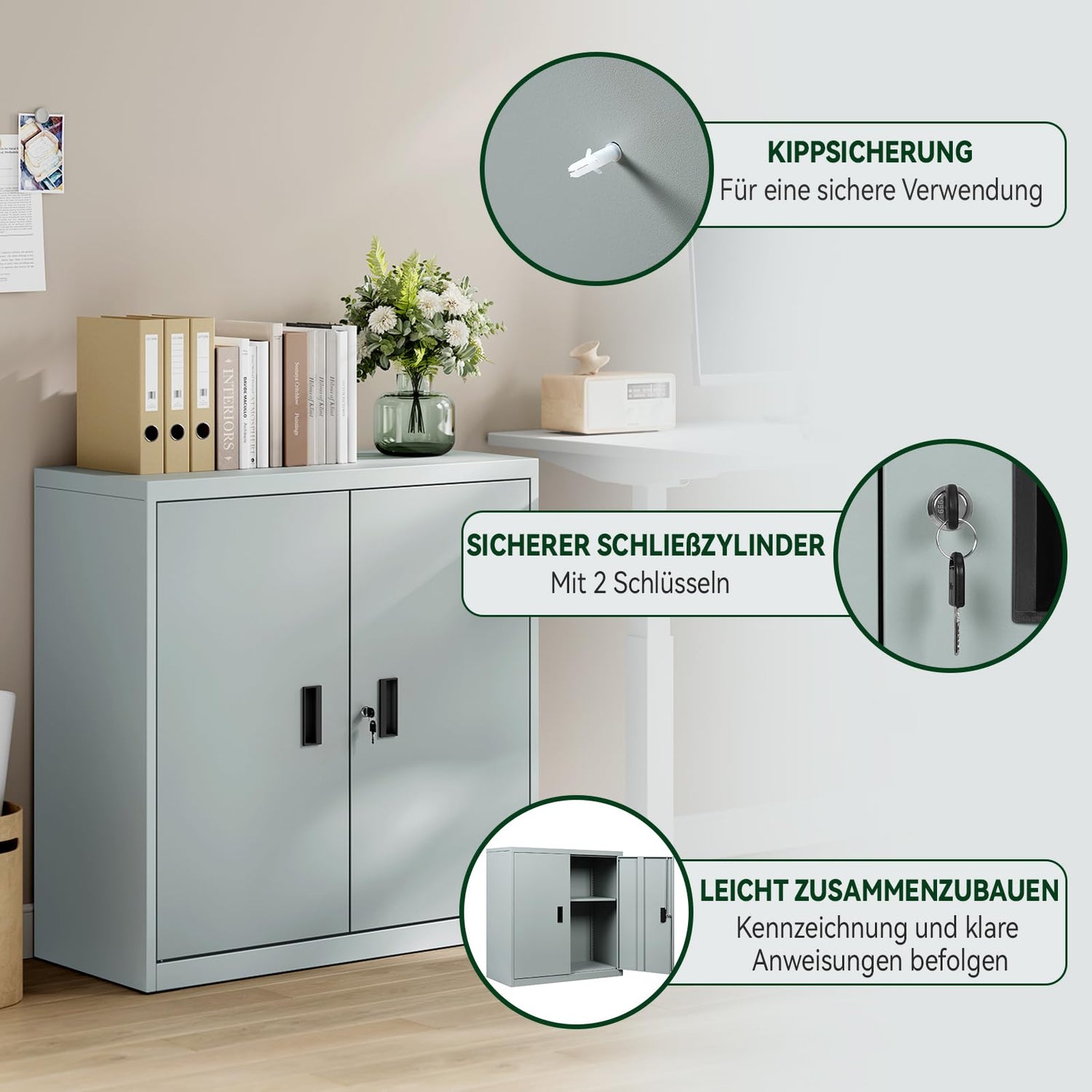 • ABSCHLIESSBAR & GERÄUMIG: Der Aktenschrank bietet mit 2 Ebenen hinter den Türen reichlich Platz für mehrere A4-Ordner oder Arbeitsmaterialien, damit haben Sie Ihre Arbeitsfläche frei. Der Schubstangenverschluss und das Zylinderschloss mit 2 Schlüsseln ermöglichen sichere Aufbewahrung von vertraulichen Unterlagen