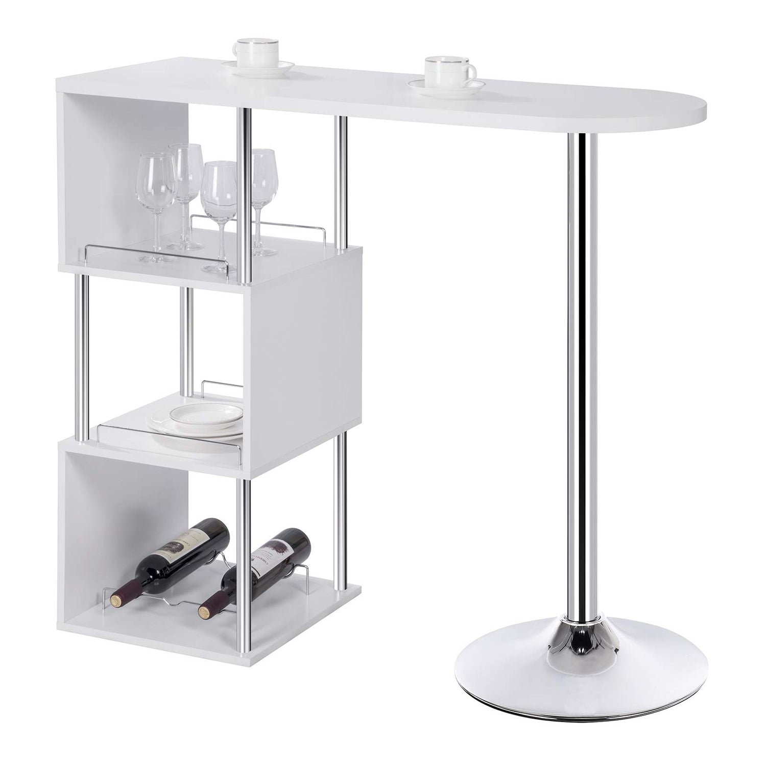 WOLTU Bartisch Stehtisch Bistrotisch Bartheke Tresentisch, mit 3 Ablagefläche, mit Weinregale, Metall, MDF, Weiß, 113x40x105cm(BxTxH)