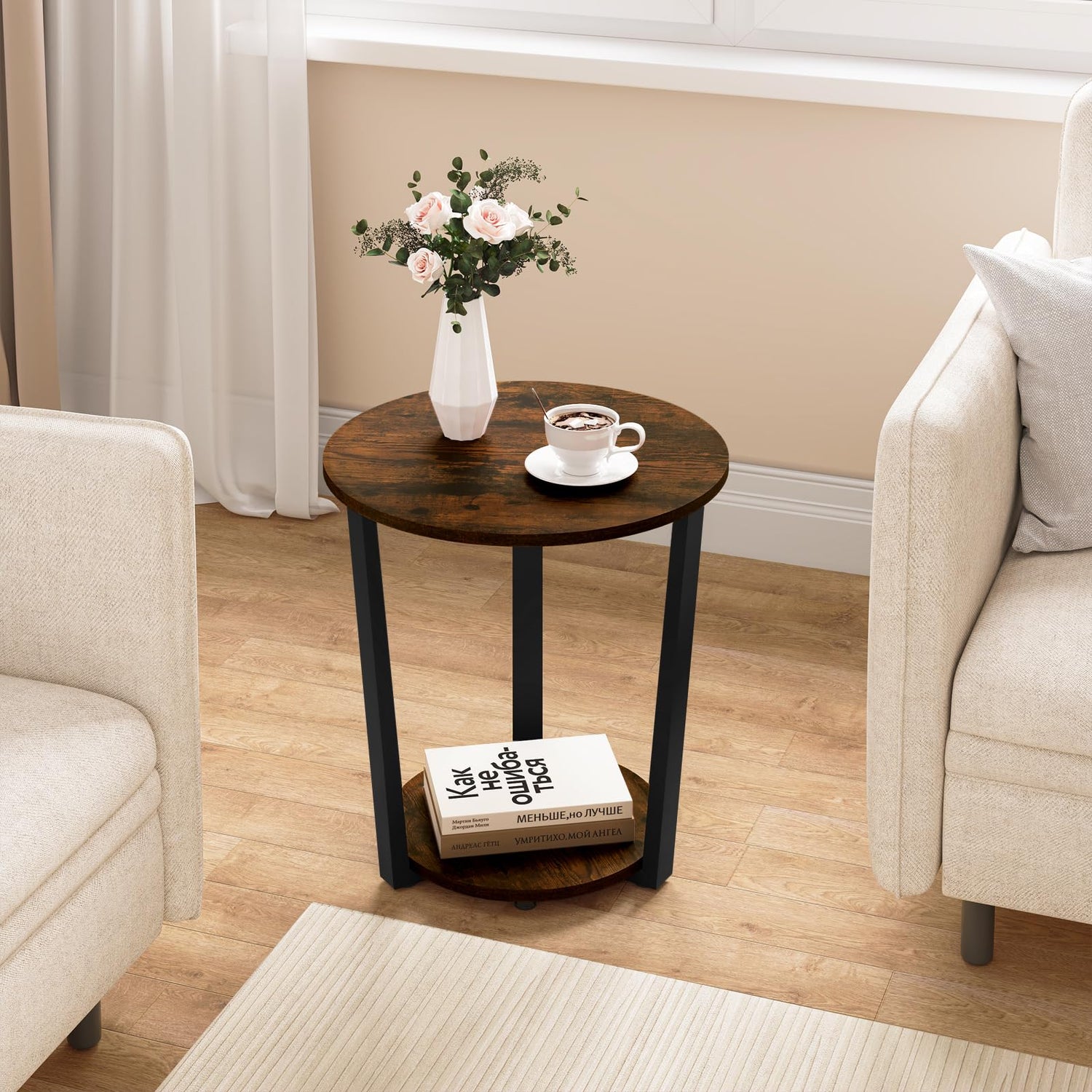 WOLTU Couchtisch rund, Beistelltisch modern, Wohnzimmertisch klein, Sofatisch mit 2 Ablagen, Wohnzimmer Tisch für Couch, Nachttisch, mit Stauraum, aus Holzwerkstoff, Rustikales Braun, BTS13vbn