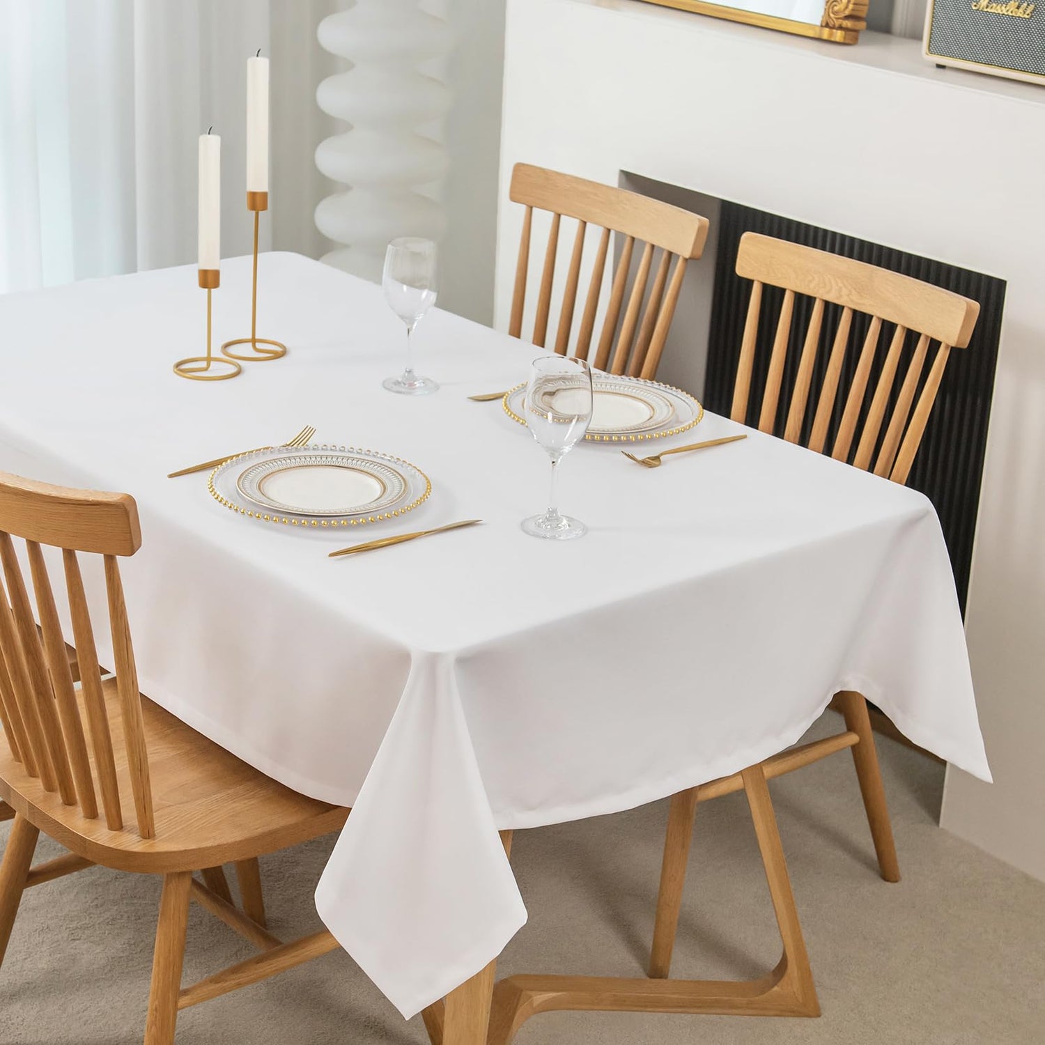 WOLTU Tischdecke 130x260cm Tischtuch Leinendecke Leinenoptik Lotuseffekt Weiß abwaschbar schmutzabweisend pflegeleicht Farbe & Größe wählbar Eckig