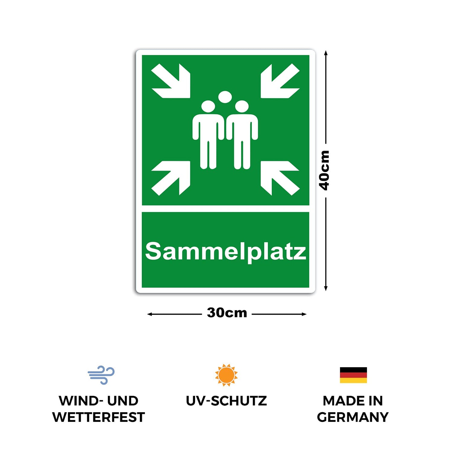 XXL Sammelplatz Schild 30 x 40 cm aus stabiler PVC Hartschaumplatte 5 mm Sammelstelle Sammelpunkt mit UV-Schutz von STROBO