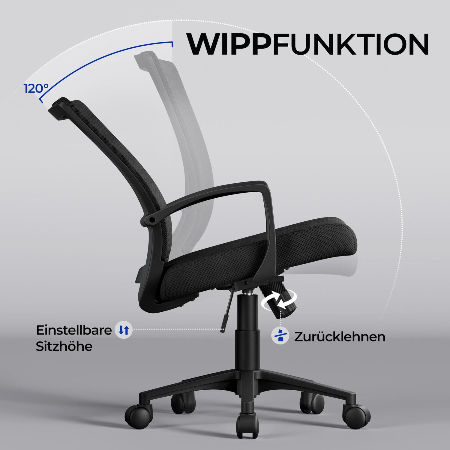 • Mit Schaunkelfunktion: Sie können den Winkel der Rückenlehne von 90° bis 120° mittels Drehknopf unter dem Sitz verstellen. In diesem bequemen Bürostuhl sich hin und her schaukeln und eine Pause nehmen