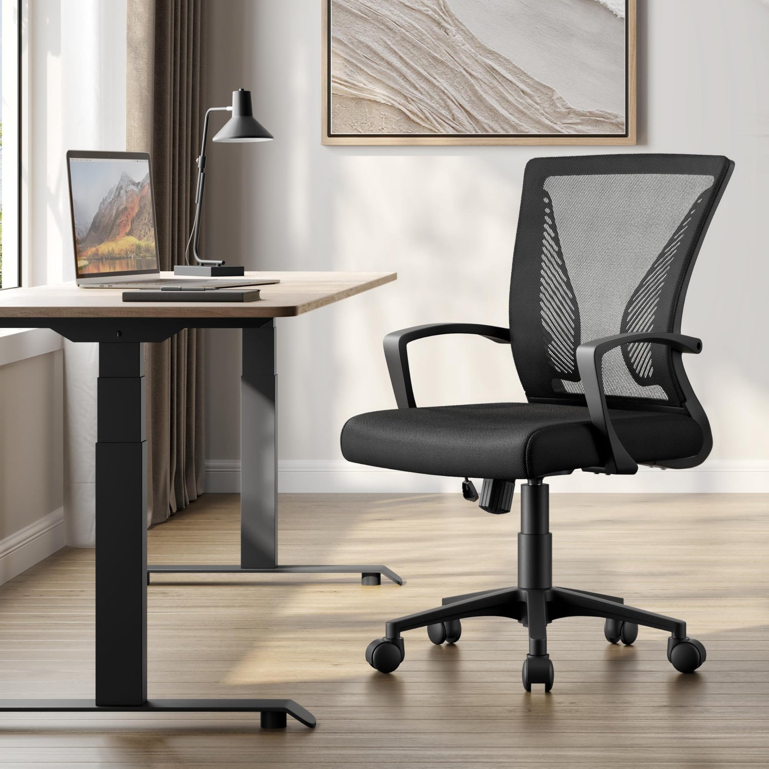 • Robuste Materialien: Dieser Drehstuhl besteht aus dem atmungsaktiven Mesh-Gewebe aus Nylon, dem hochdichtem Schaumstoff, dem strapazierfähigen Metall und den FSC-zertifizierten Platten. Die maximale Belastbarkeit beträgt 136 kg