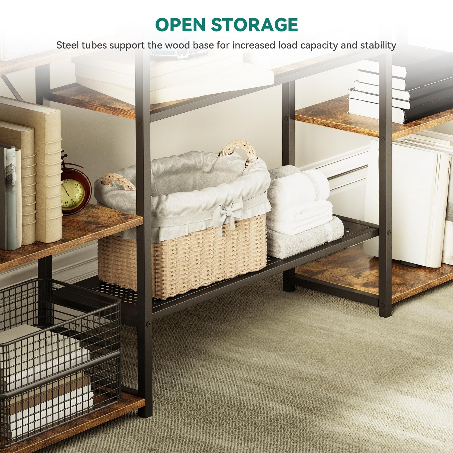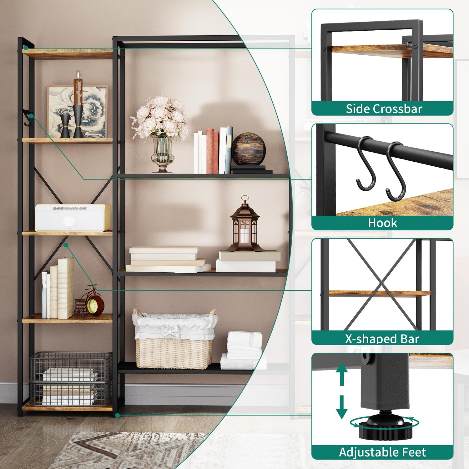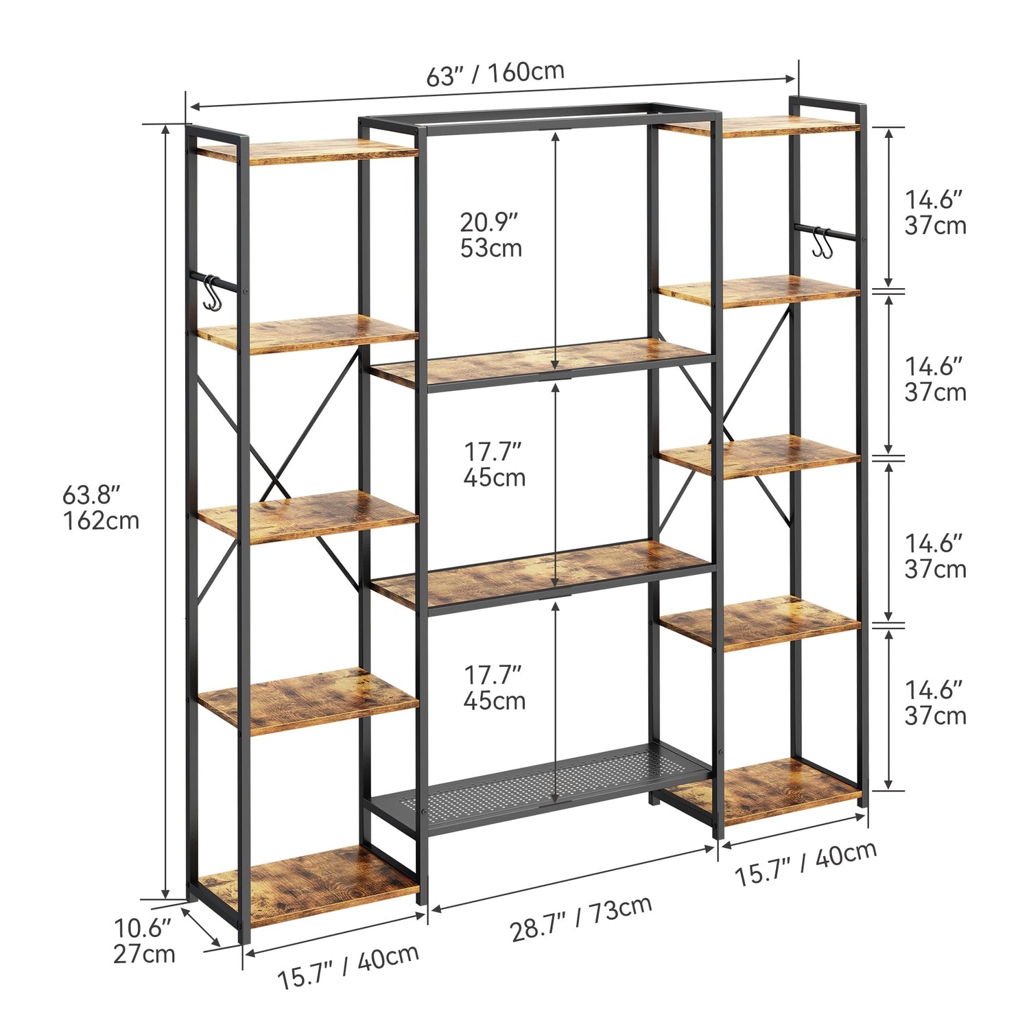 Das YITAHOME Industrielle Bücherregal in Vintagebraun bietet stilvolle Aufbewahrung mit einem robusten Design. Mit 13 Fächern und 4 Haken ist es die perfekte Lösung für eine organisierte und elegante Raumgestaltung.