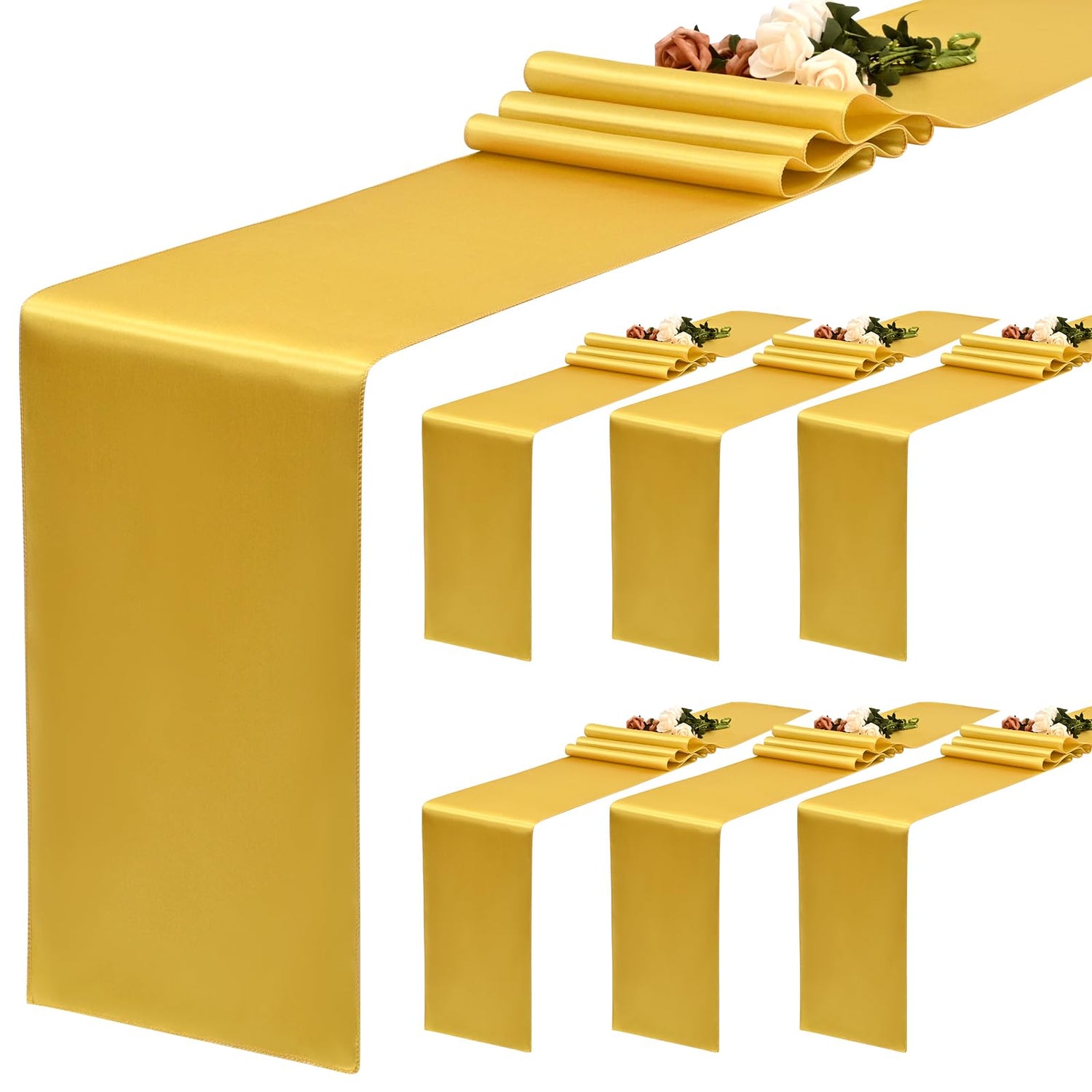 Goldfarbener Tischläufer aus Satin, 30,5 x 183,9 cm lang, Seiden-Tischläufer für Hochzeit, Party, Geburtstag, Bankett, Tischdekoration – Gold, 6 Stück
