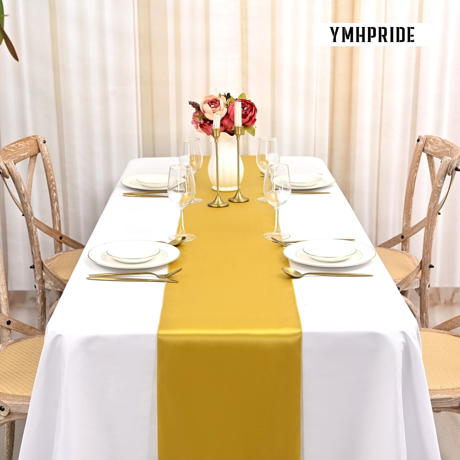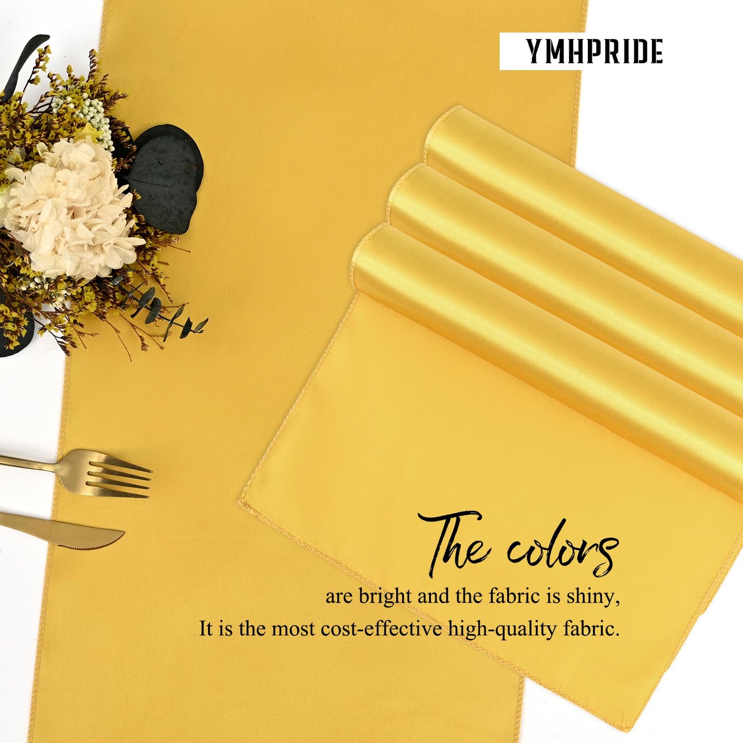 YMHPRIDE 6 Stück Tischläufer Gold, Satin-Tischläufer, 30 x 180 cm lang, Tischläufer aus Seide für Tischläufer Hochzeit, Party, Tischläufer Geburtstag, Bankett, Tischdekoration – Gold