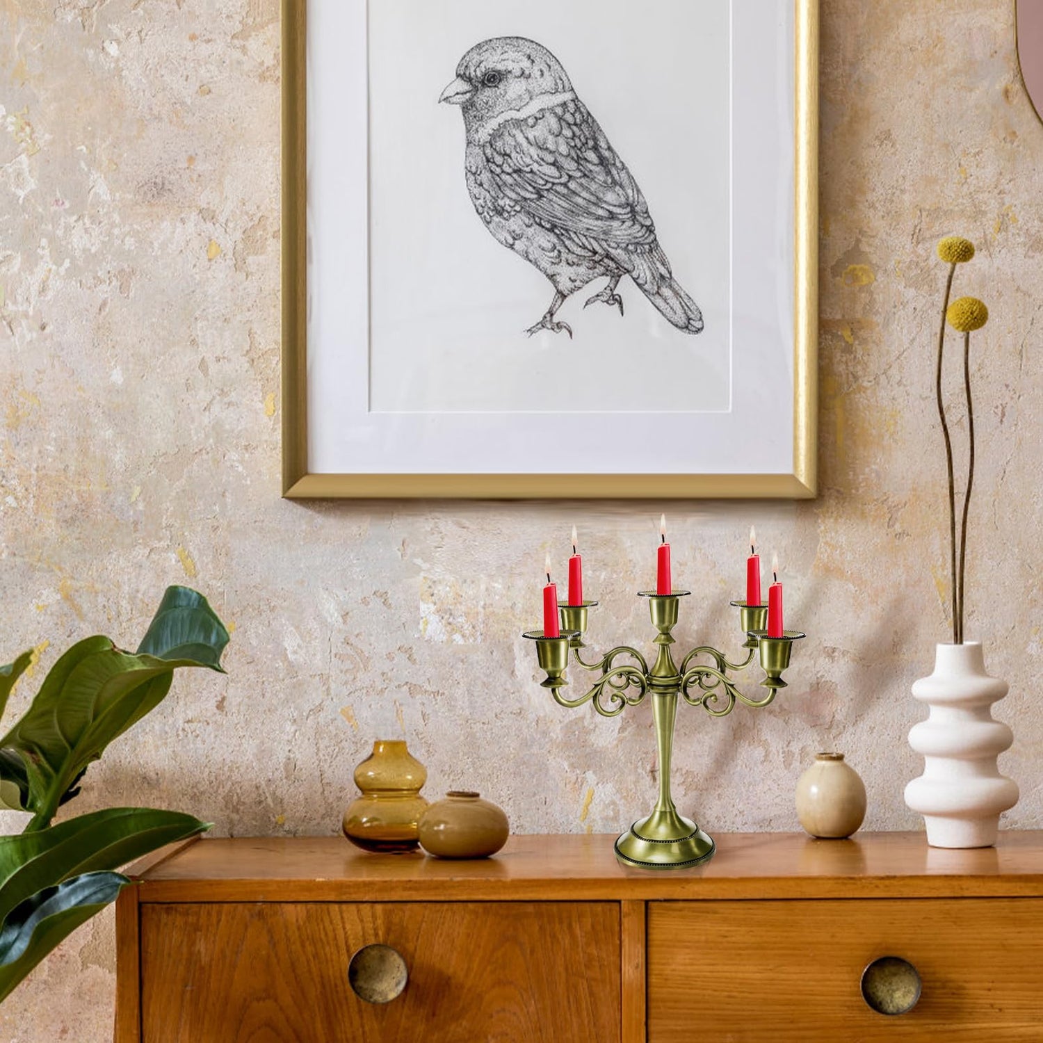 YOUEON 5 Arm Kerzenständer, 26,5 cm Antike Bronze Kerzenhalter Bronze Kandelaber Kerzenhalter für 2,5 cm Durchmesser Stumpenkerzen, Kegelkerzenhalter, Kandelaber Dekoration, Hochzeit