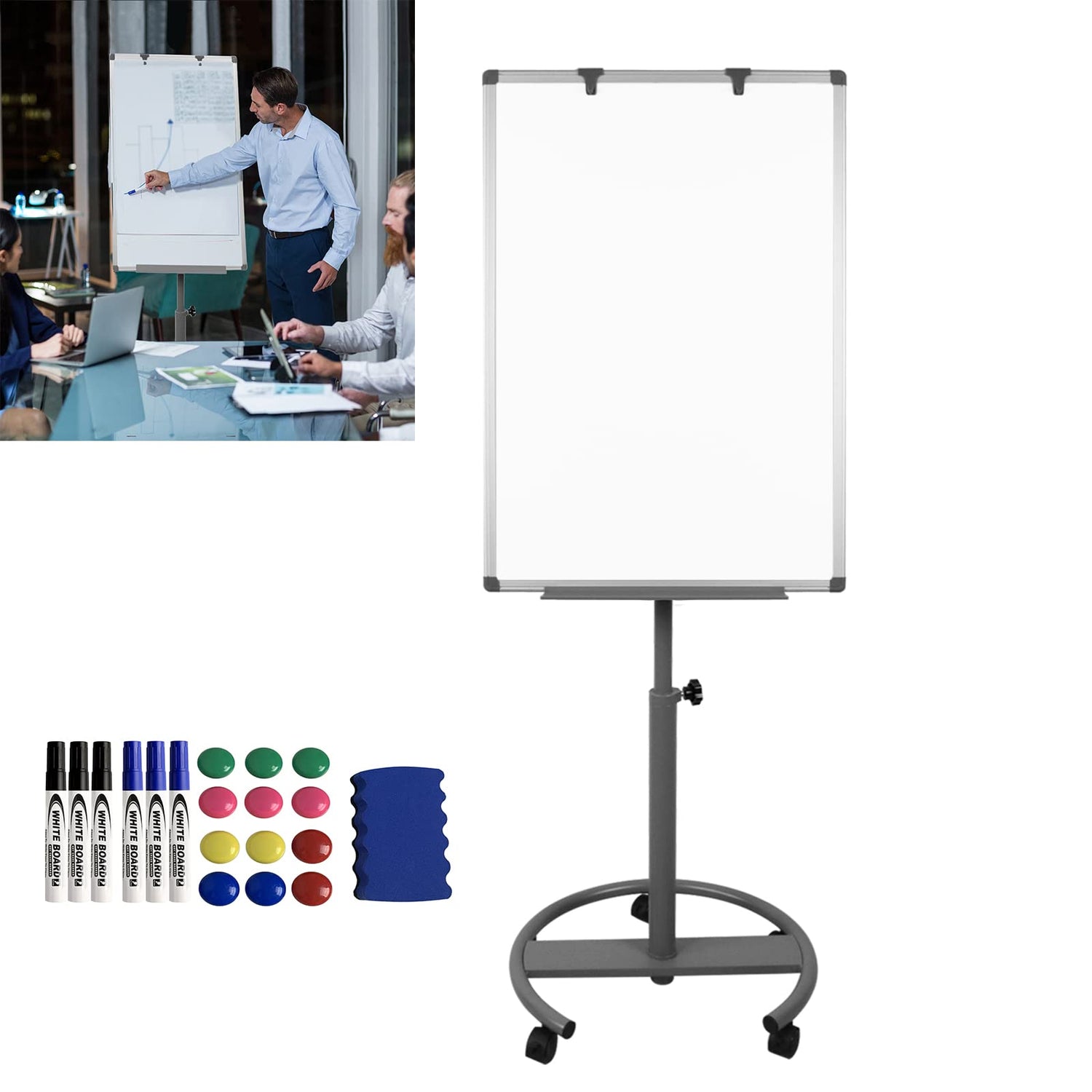 YRHome Flipchart mit Rollen 60x90 cm Whiteboard auf Rollenfuß Mobil Flipchart höhenverstellbar Staffelei Magnetisch Beschreibbar Abwischbar Präsentationstafel Papierhalter (Rundfuß mit Rollen)