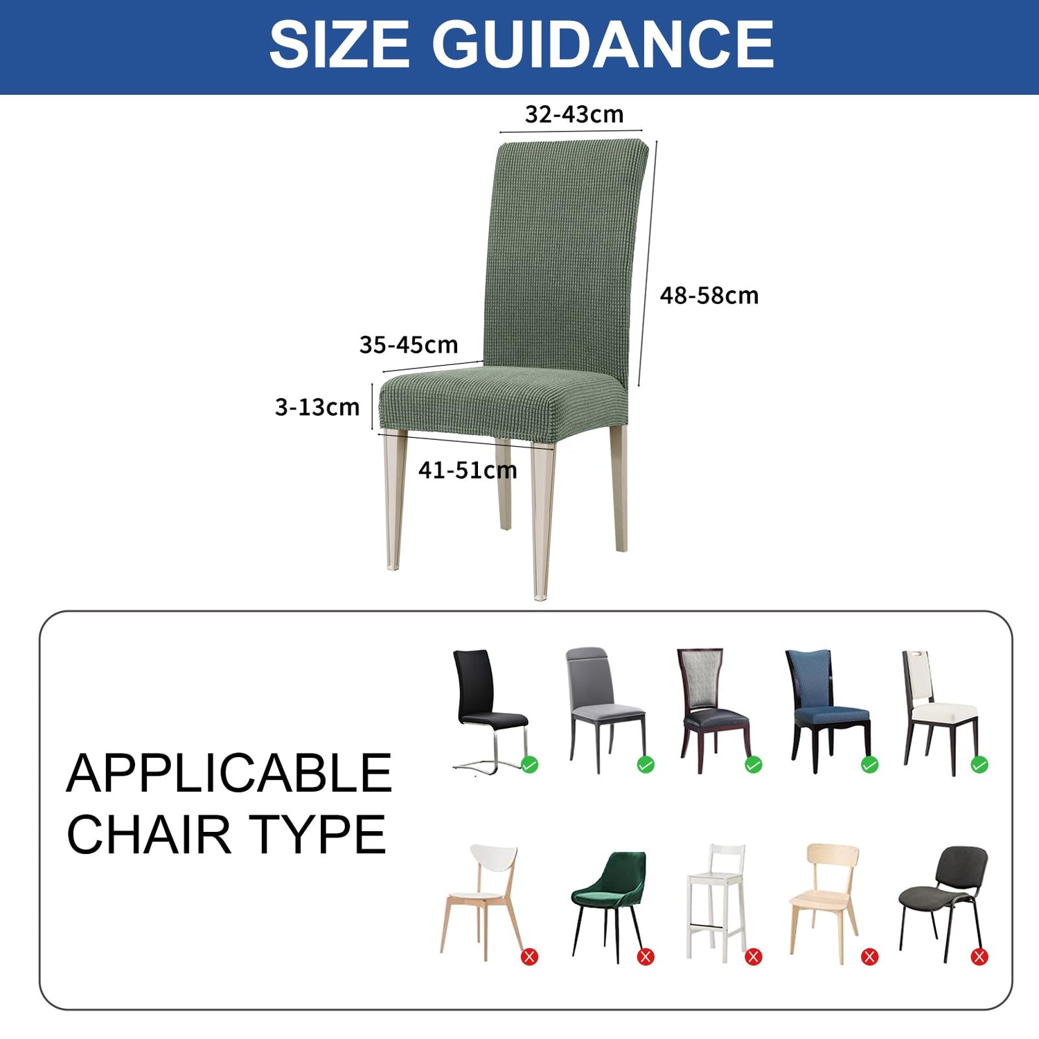 • Universelle Passform: Dank des dehnbaren Materials (92 % Polyester, 8 % Spandex) passen die Hussen auf viele Stuhlgrößen (Rückenlehne: 48-70 cm hoch, 35-48 cm breit; Sitz: 35-51 cm lang, 35-54 cm breit) – auch bei unregelmäßigen Formen faltenfrei.