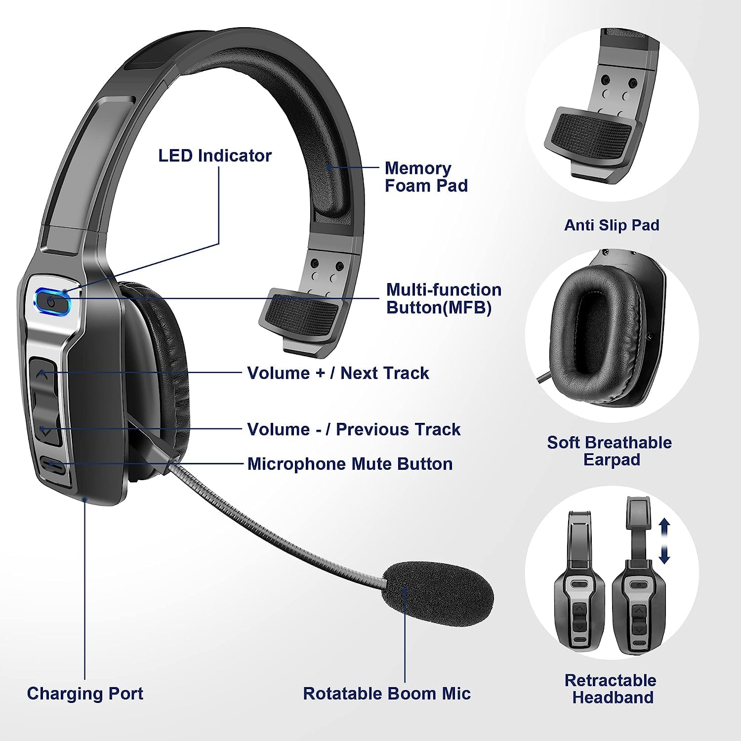 • 【60 Stunden Super-Akkulaufzeit】Dieses Trucker-Bluetooth-Headset ist mit einem großen 400-mAh-Akku ausgestattet, der speziell für LKW-Fahrer auf langen Strecken oder für Geschäftsreisende entwickelt wurde. Dieses kabellose Headset kann in nur 2 Stunden vollständig aufgeladen werden und unterstützt bis zu 60 Stunden Arbeits-/Musikzeit und 35 Stunden Gesprächszeit. Bietet ausreichend Leistung, um bei der Arbeit über große Entfernungen in Verbindung zu bleiben, Musik gegen Ermüdungserscheinungen und weiche Ohrenschützer für ganztägigen Komfort.