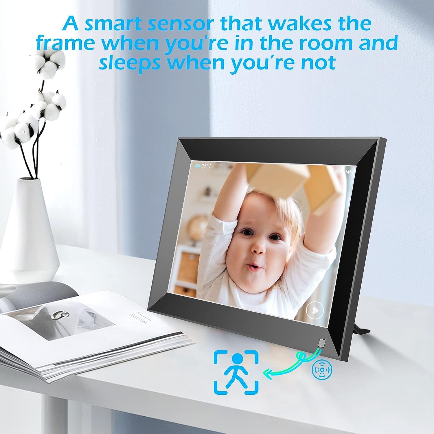 Zcyge WLAN Digitaler Bilderrahmen 10.1 Zoll,Videoclips und Fotos sofort per E-Mail oder App teilen,Automatische Bilderdrehung, Energiesparender Bewegungssensor,Schwarz…
