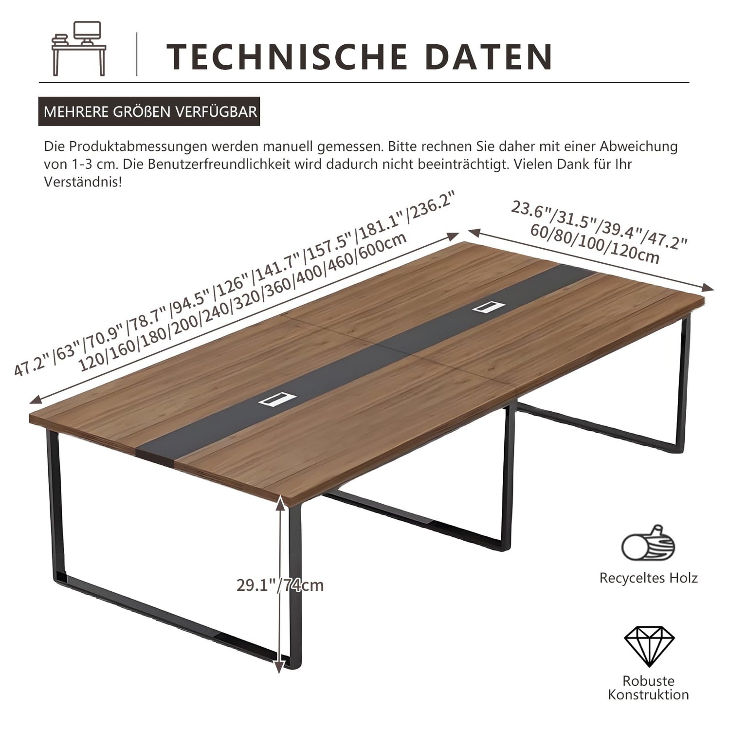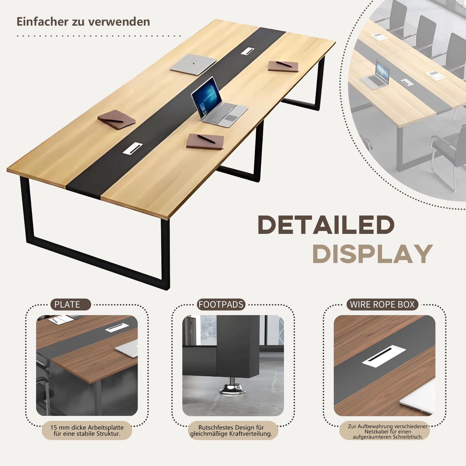 • Großer Arbeitsraum: Rechteckiges Design für komfortables Sitzen von 8-12 Personen, perfekt für Meetings und Präsentationen.